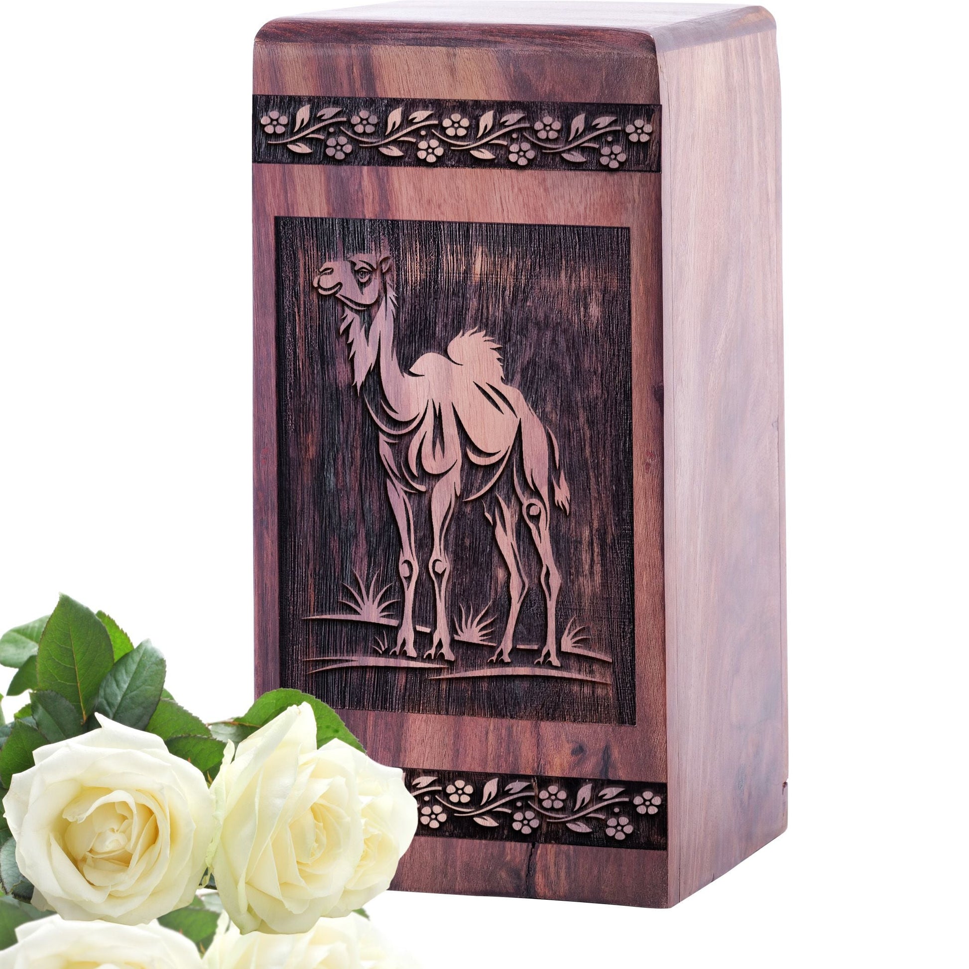 Handcrafted Camel in Desert Wooden Cremation Urn - Silent Journey