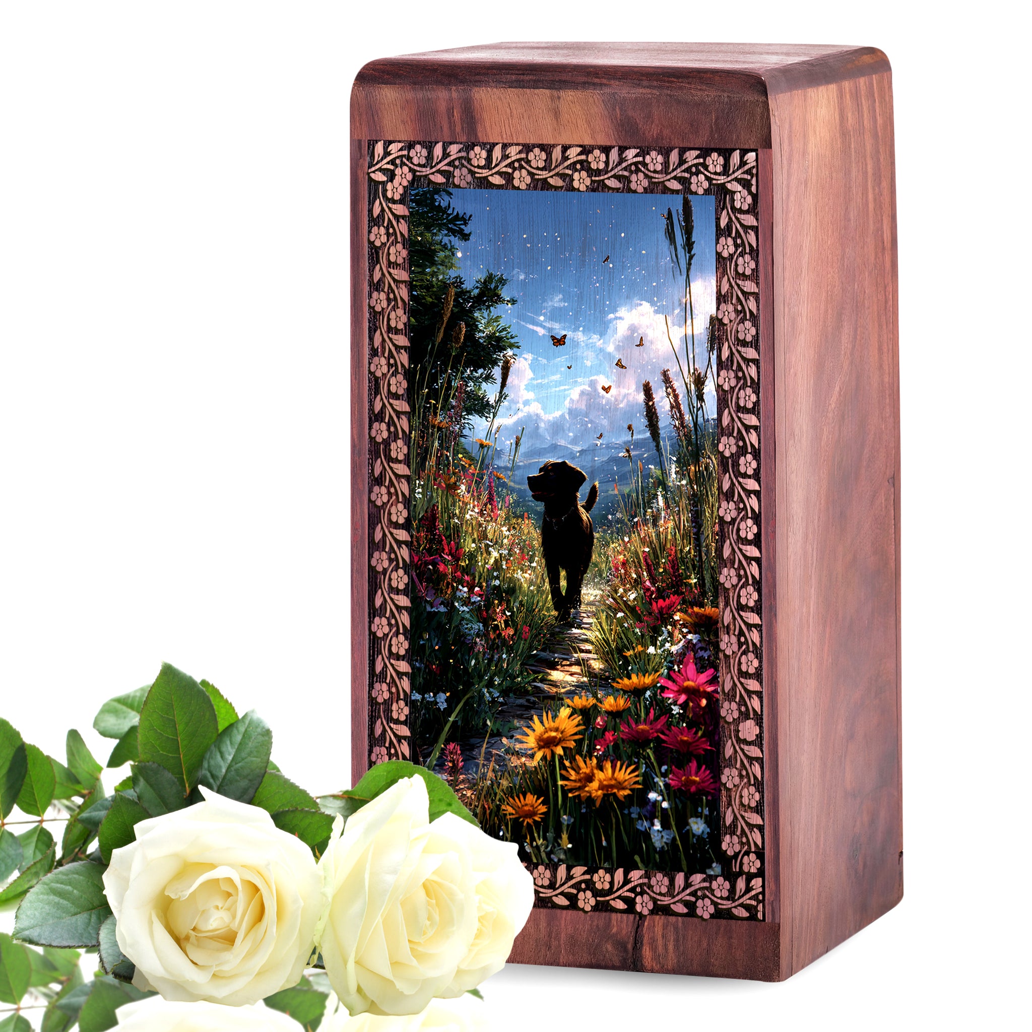 Beautiful Dog Wooden Memorial Urn - Wooden Cremation Urns For Pet Ashes
