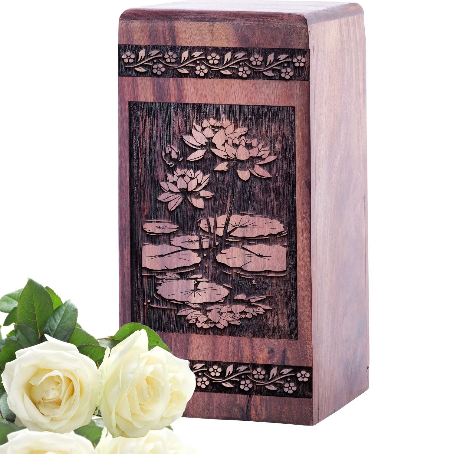 Beautiful Wooden Lotus Flower Cremation Urn for Adult Ashes keepsake