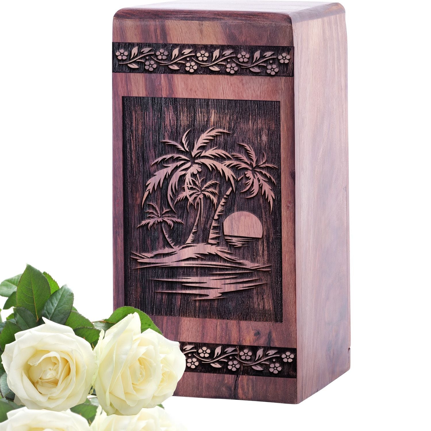 Celebrate a life filled with tranquility and reflection with the Handcrafted Sunset Beach Wooden Urn for Ashes. Featuring a beautifully detailed sunset beach Wood Box, this Wood Cremation Urn symbolizes peace, beauty, and serenity, making it a meaningful tribute.