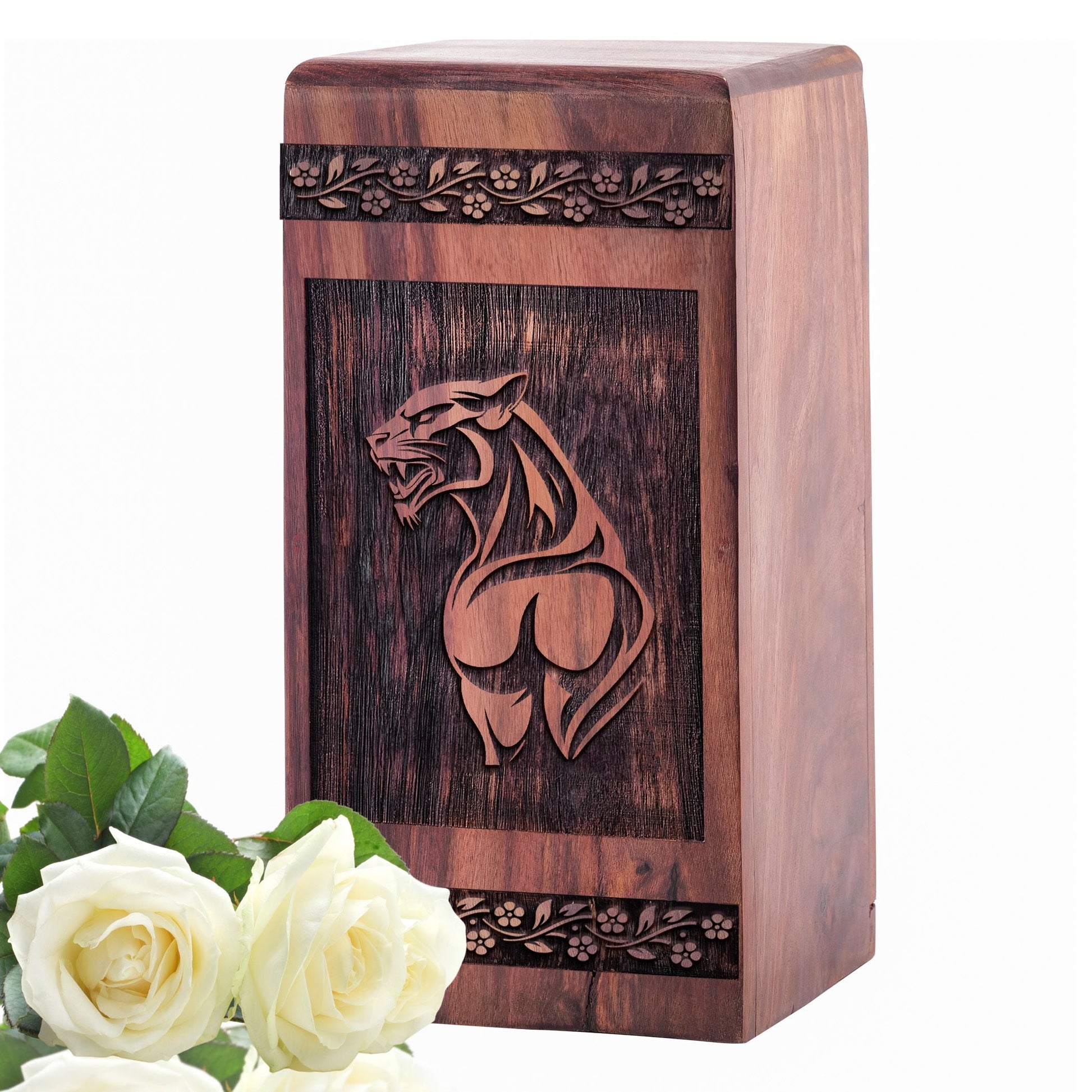 Decorative Large Wooden Panther Urn for Cremation Memorial Ashes