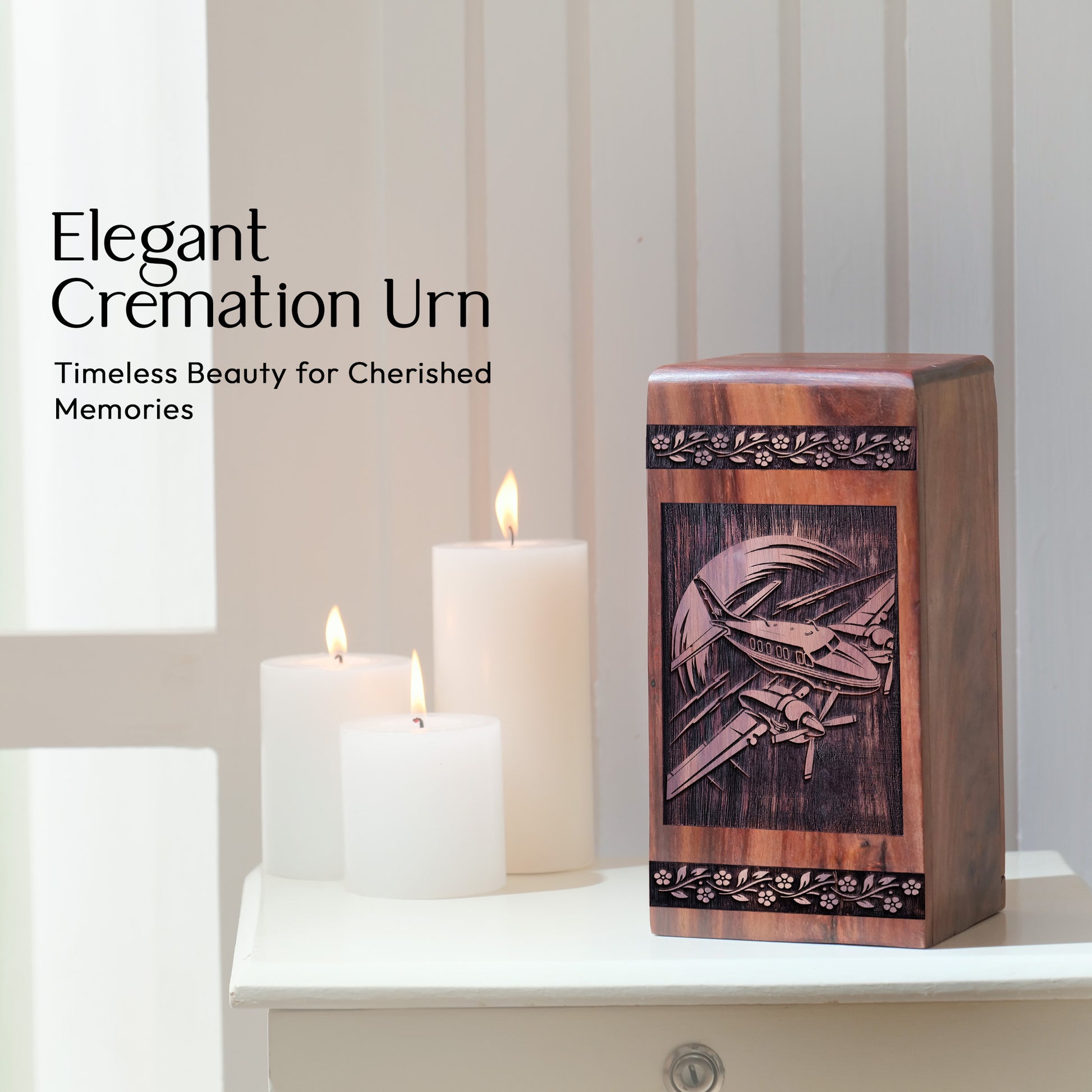Airborne Memories Wooden Cremation Urn - Honoring a Spirit That Soared