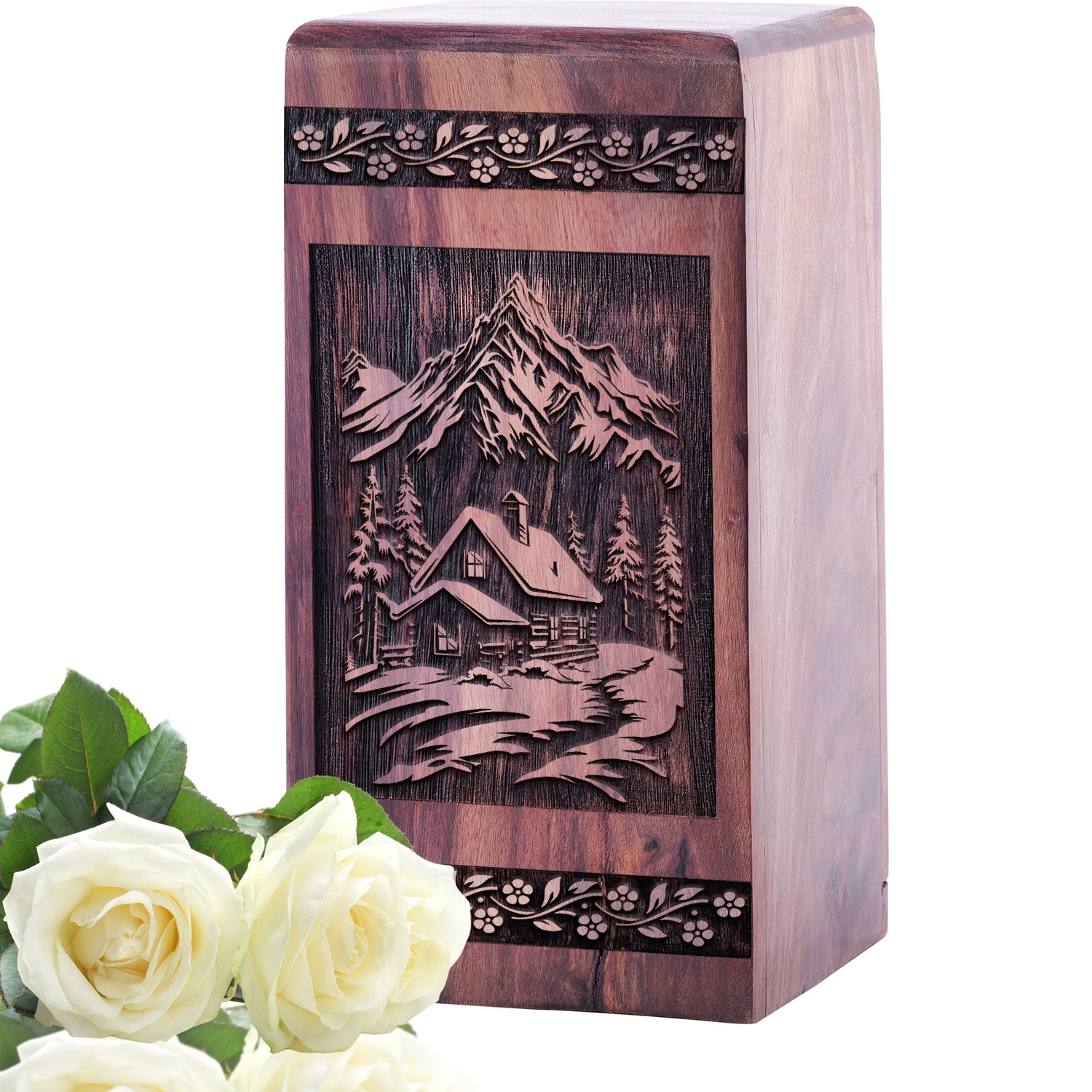 Decorative Wooden Alpine Meadow Urn for Human Burial Ashes
