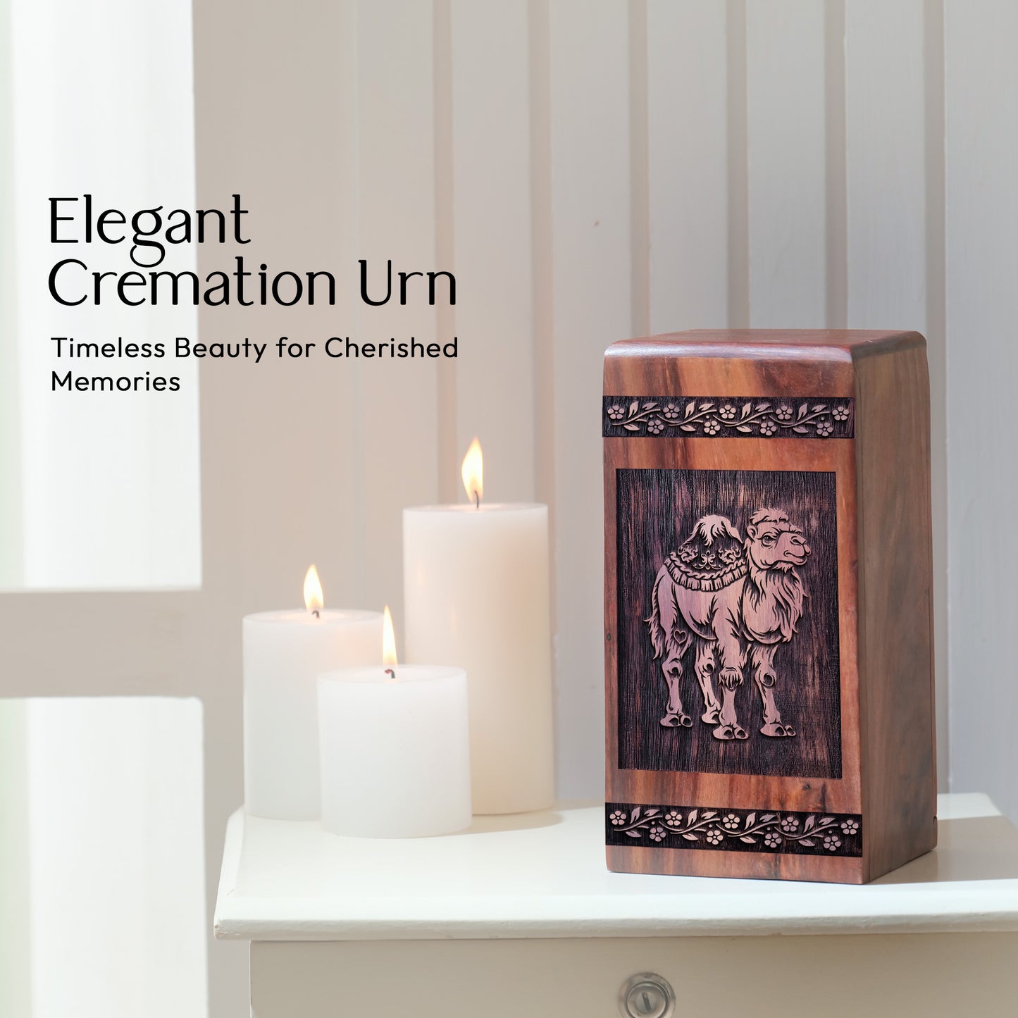 Handcrafted Camel in Desert Wooden Cremation Urn - Sand and Serenity