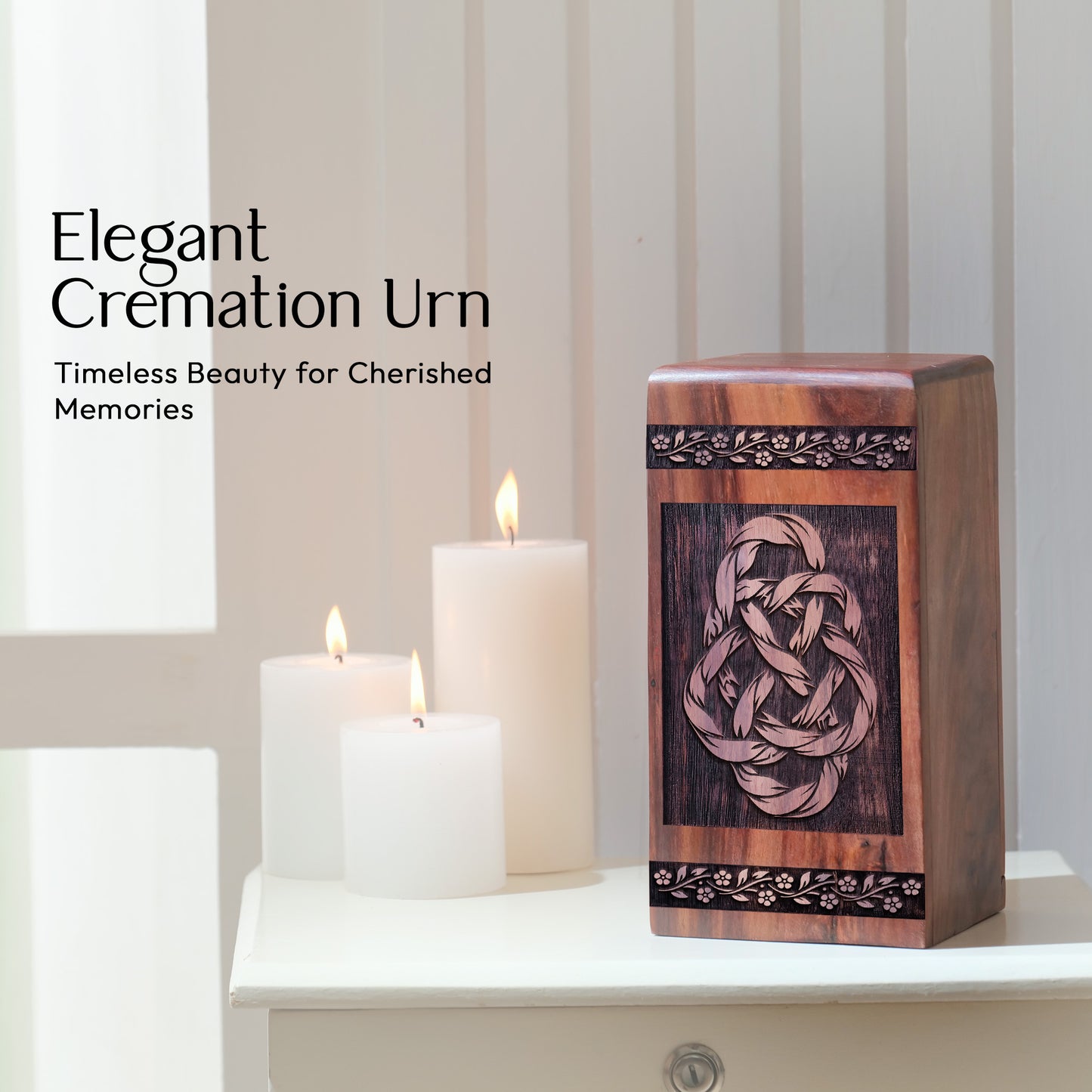 Handcrafted Celtic Love Knot Wooden Urn for Human Ashes - Heartfelt Memorial Urn