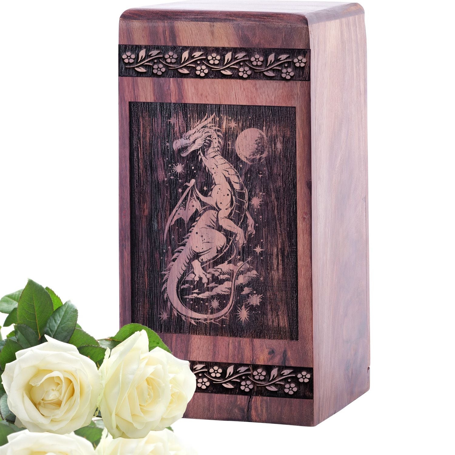 Mystic Guardian Dragon Wooden Urn - A Symbol of Protection and Wisdom