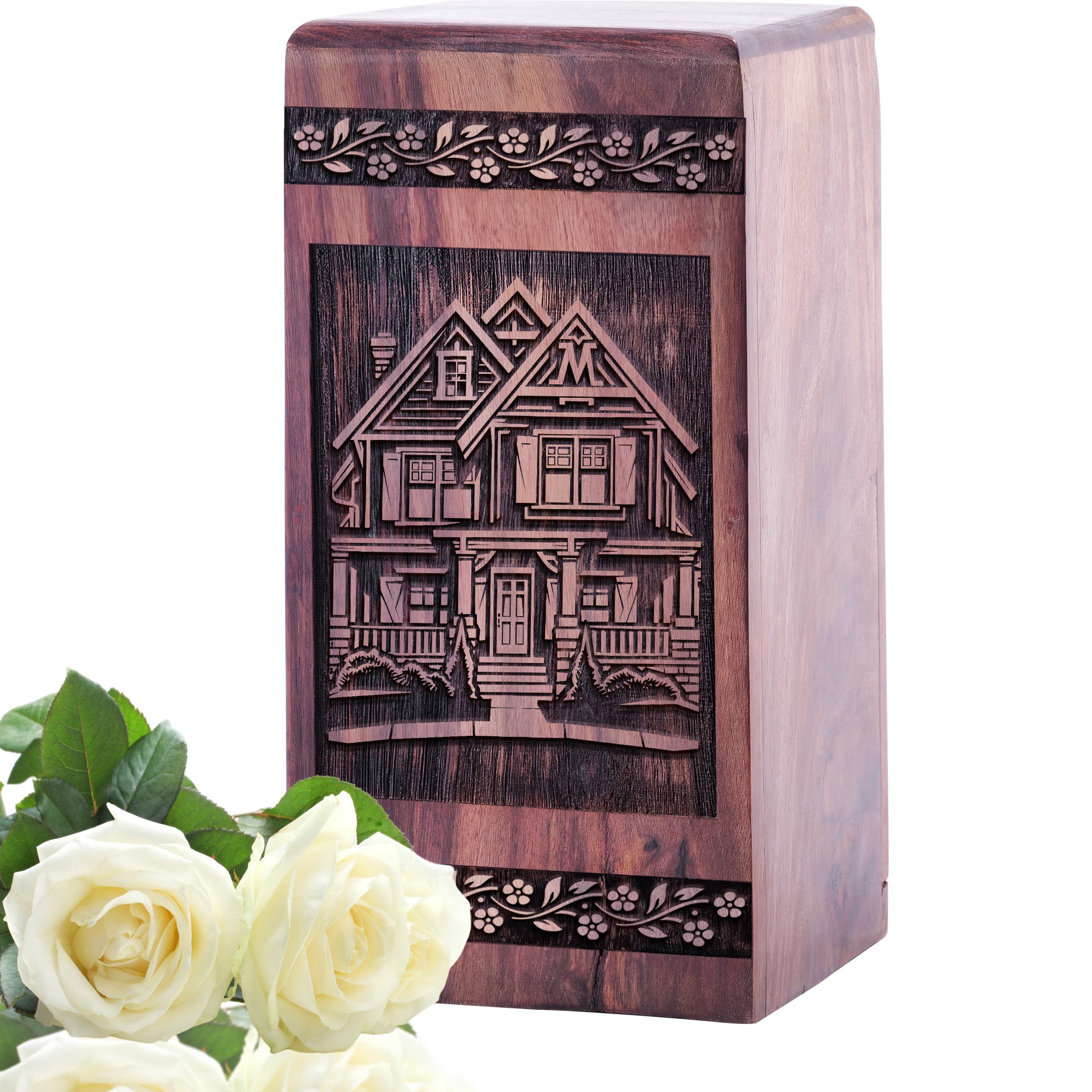Decorative Wooden Martha's Vineyard Urn for Human Burial Ashes