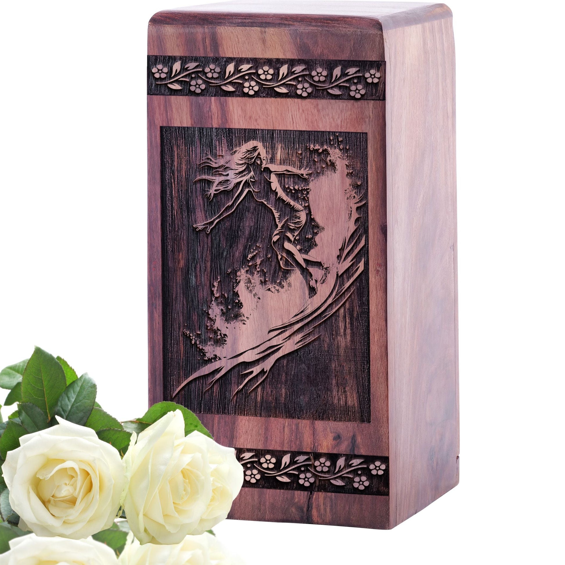 Decorative Wooden Surfing Waves Memorial Urn for Adult UrnAshes