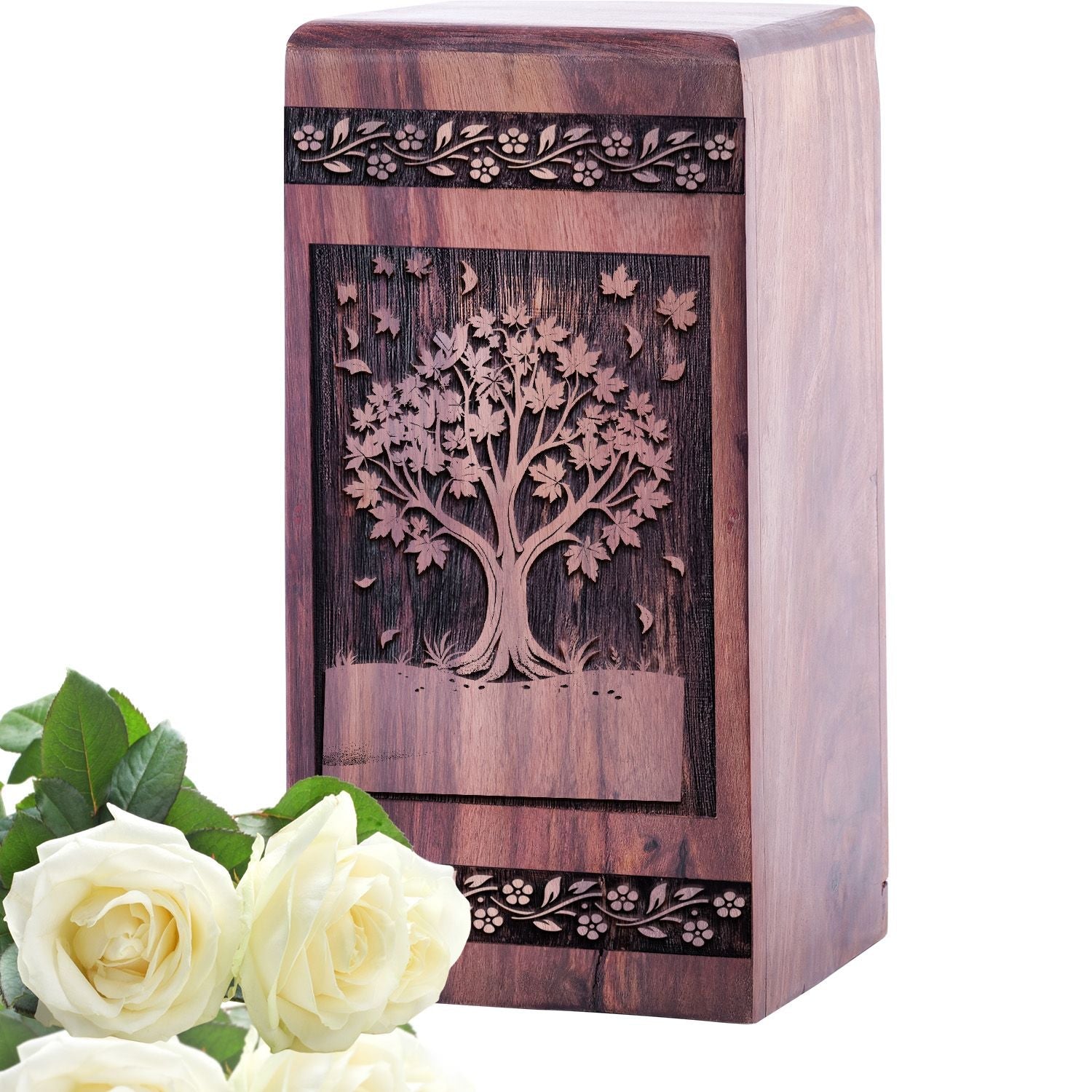 Cherish the legacy of a life well-lived with the Handcrafted Maple Tree Wooden Cremation Urn. Featuring an intricately carved maple tree motif, this Wood Cremation Urn symbolizes resilience, growth, and everlasting love.