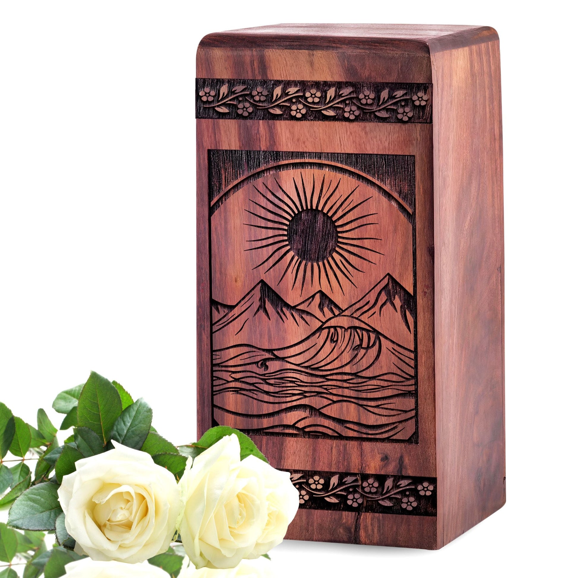 Handcrafted Wooden Mountain Cremation Urn for Ashes - Lasting Tribute