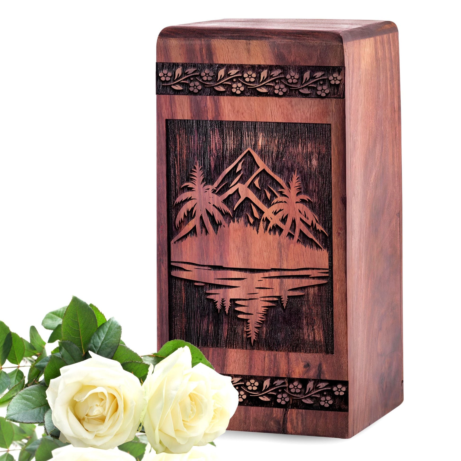 Handcrafted Wooden Mountain Urn for Ashes - Eternal Memorial