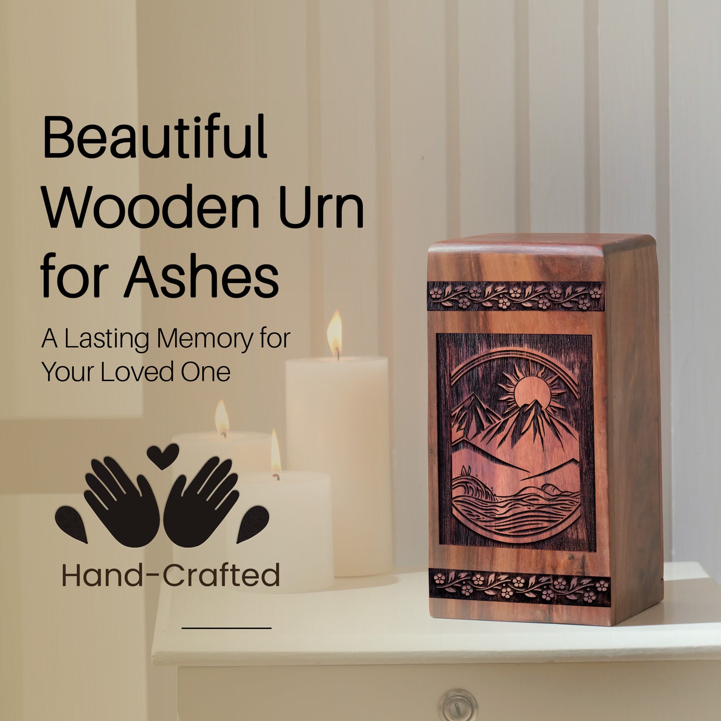 Handmade Wooden Mountain Urn for Ashes - Unique Keepsake