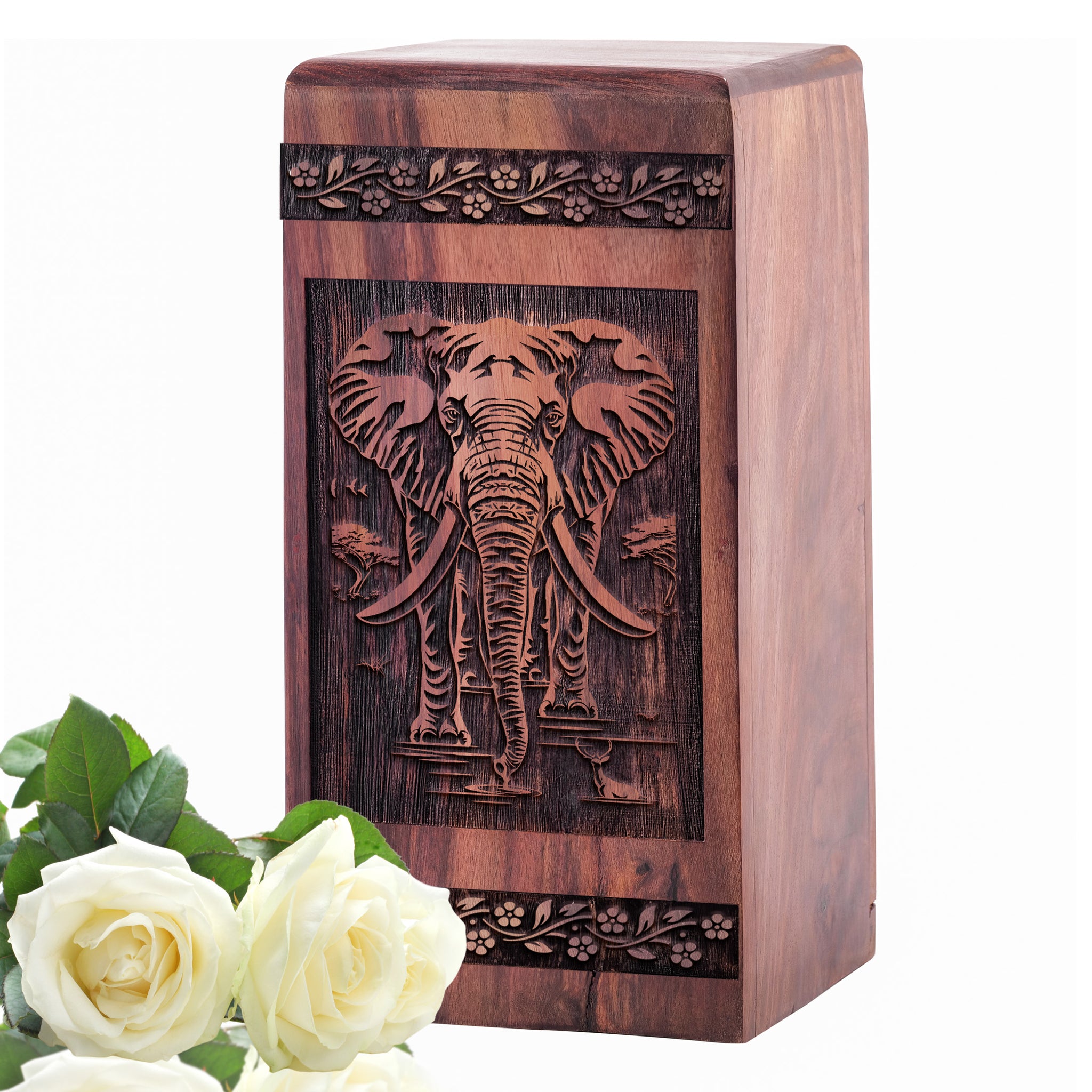 The Majestic Trunk Elephant Urn celebrates the grandeur and intelligence of a cherished soul. Featuring a detailed engraving of a noble elephant with its trunk raised high, this urn symbolizes wisdom, strength, and the enduring legacy of a life filled with dignity and love.