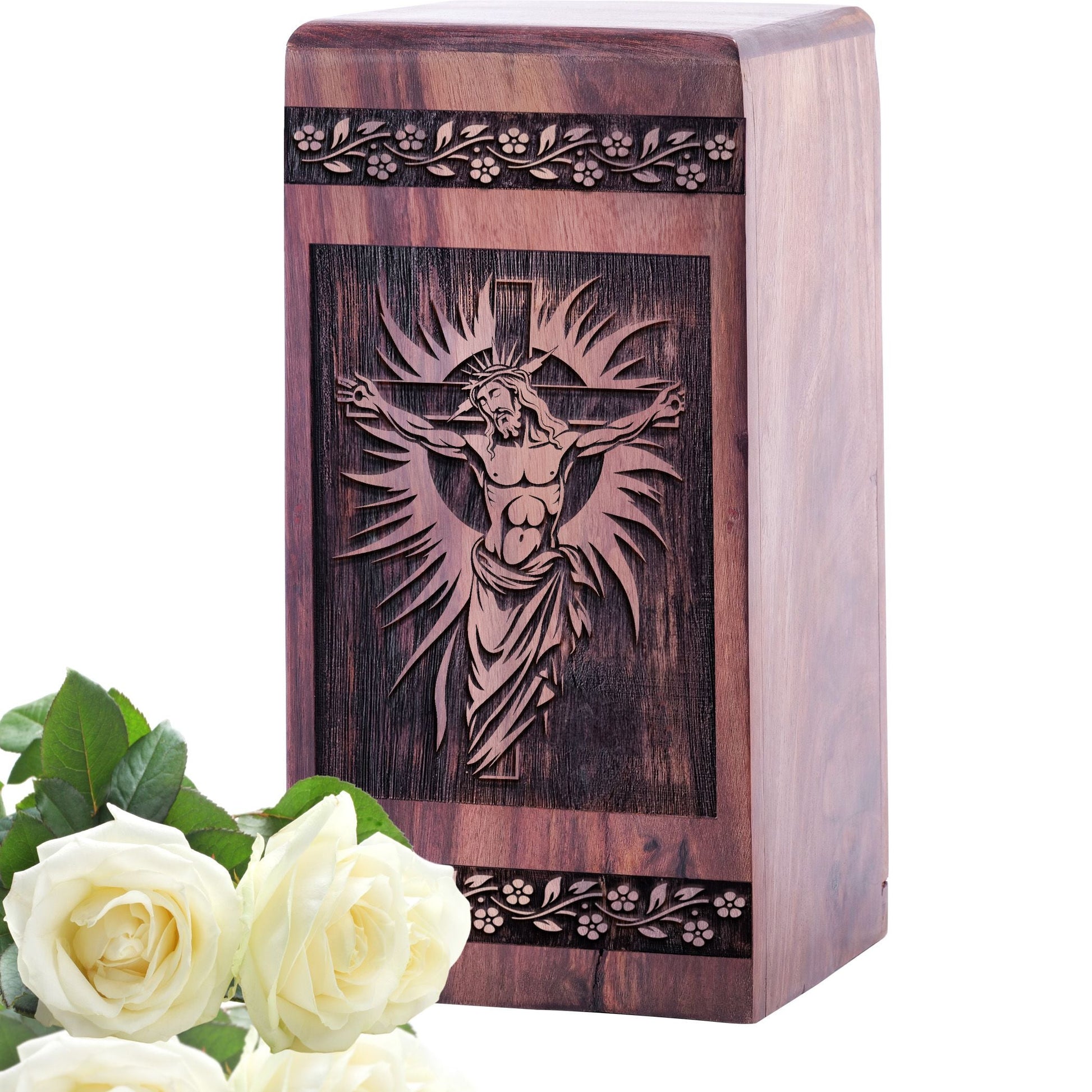 Divine Light Wooden Cremation Urn - Honoring Christ’s Sacrifice