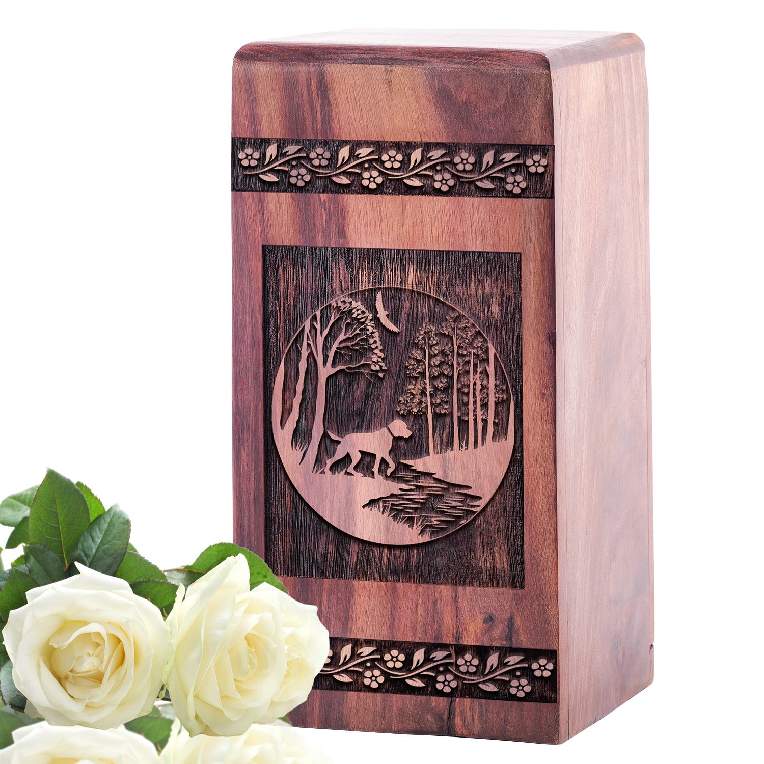 The Guardian Dog Wooden Urn represents the protective nature and unwavering loyalty of your pet. Featuring a proud and watchful dog Wood Box, this urn is a heartfelt tribute to your cherished companion.