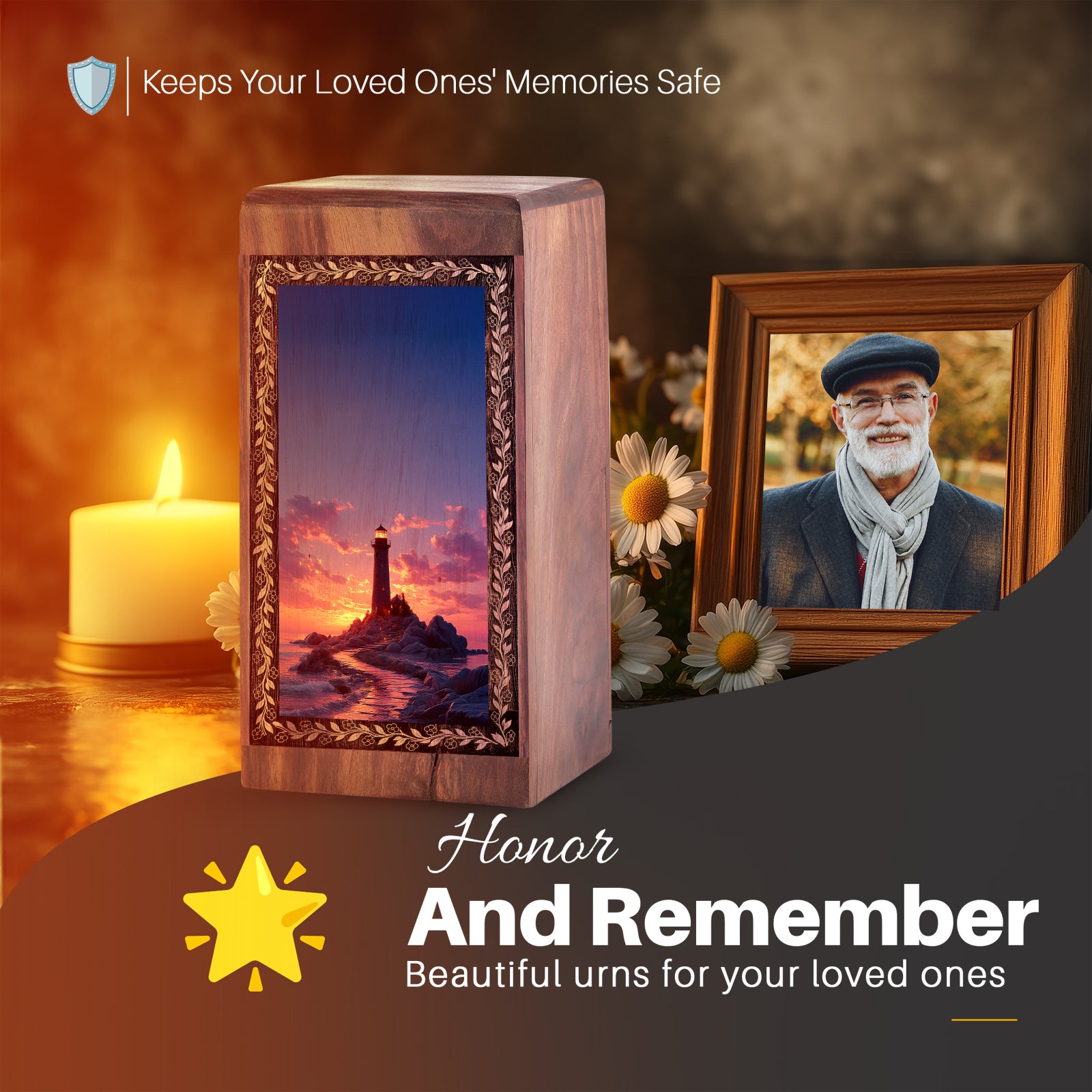 Honor your loved one with the Ocean Rock Lighthouse Theme Funeral Urn, a meaningful tribute that reflects strength, peace, and eternal guidance. This wooden urn is thoughtfully designed to provide a dignified resting place, making it a comforting choice among wooden urns for human ashes adult man. Its lighthouse and ocean rock design symbolizes resilience and lasting connection, offering emotional comfort during remembrance.
