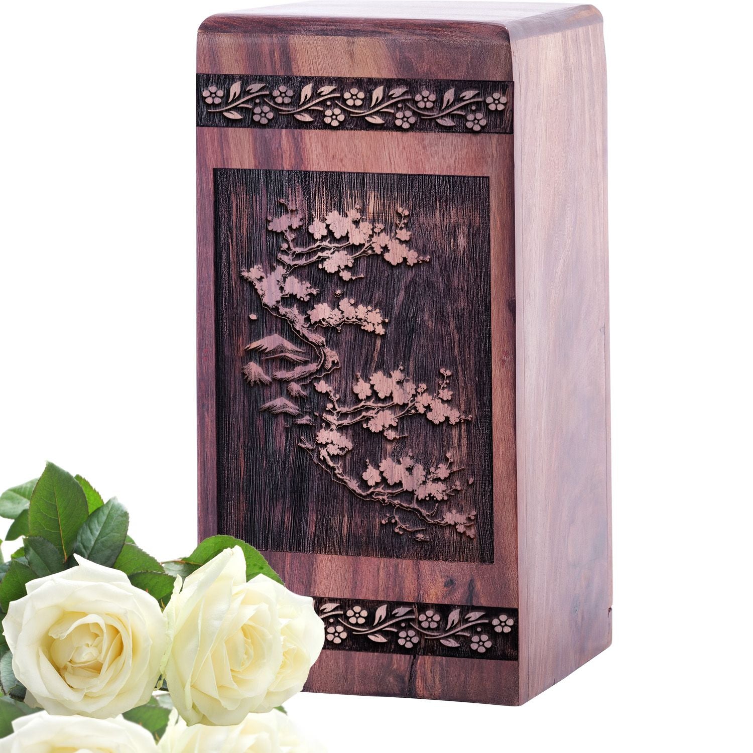 Handcrafted Falling Cherry Blossoms Wooden Urn for Human Ashes - Memorial Urn