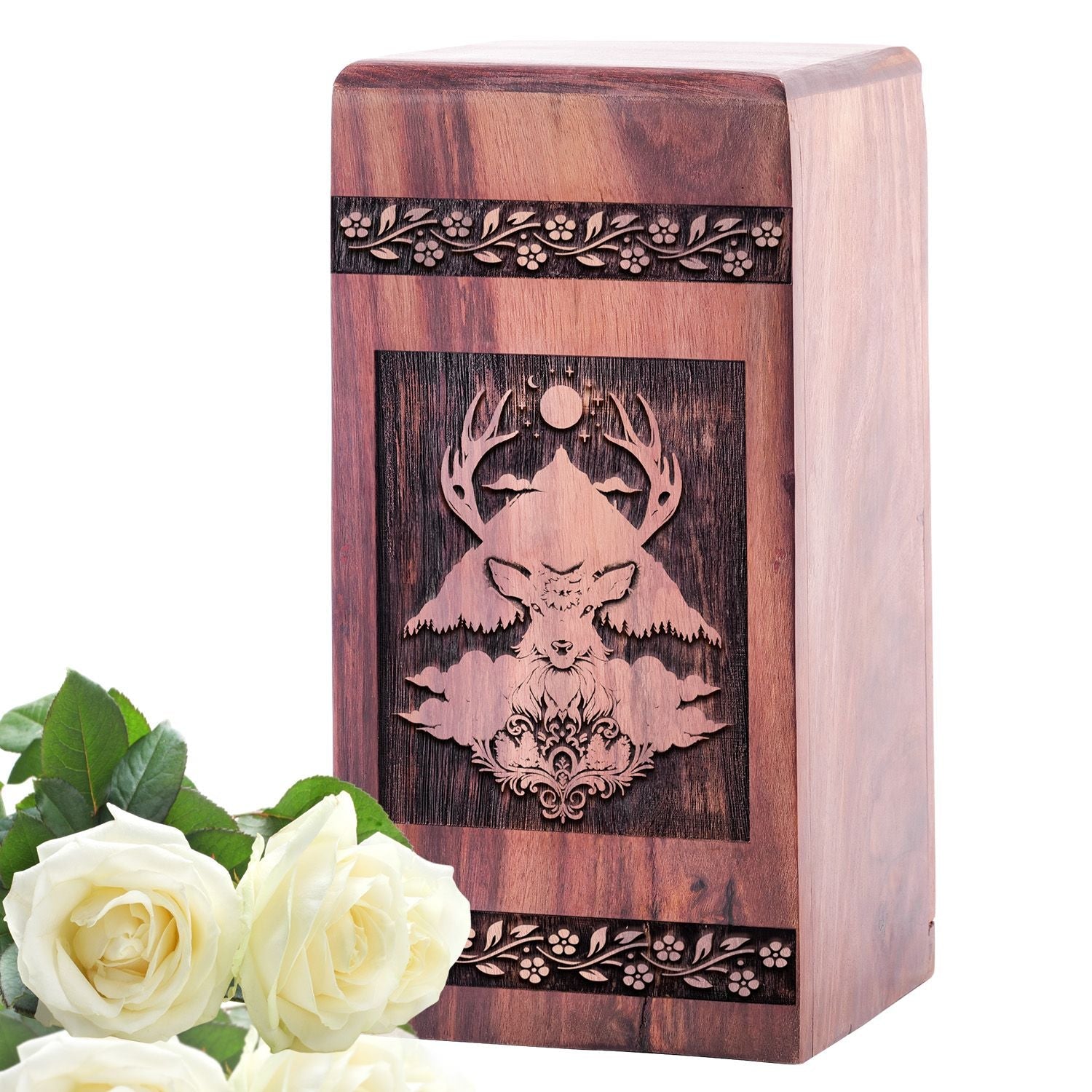 Preserve the memory of your loved one with this deer-Woodd wooden urn, a meaningful and tribute.
