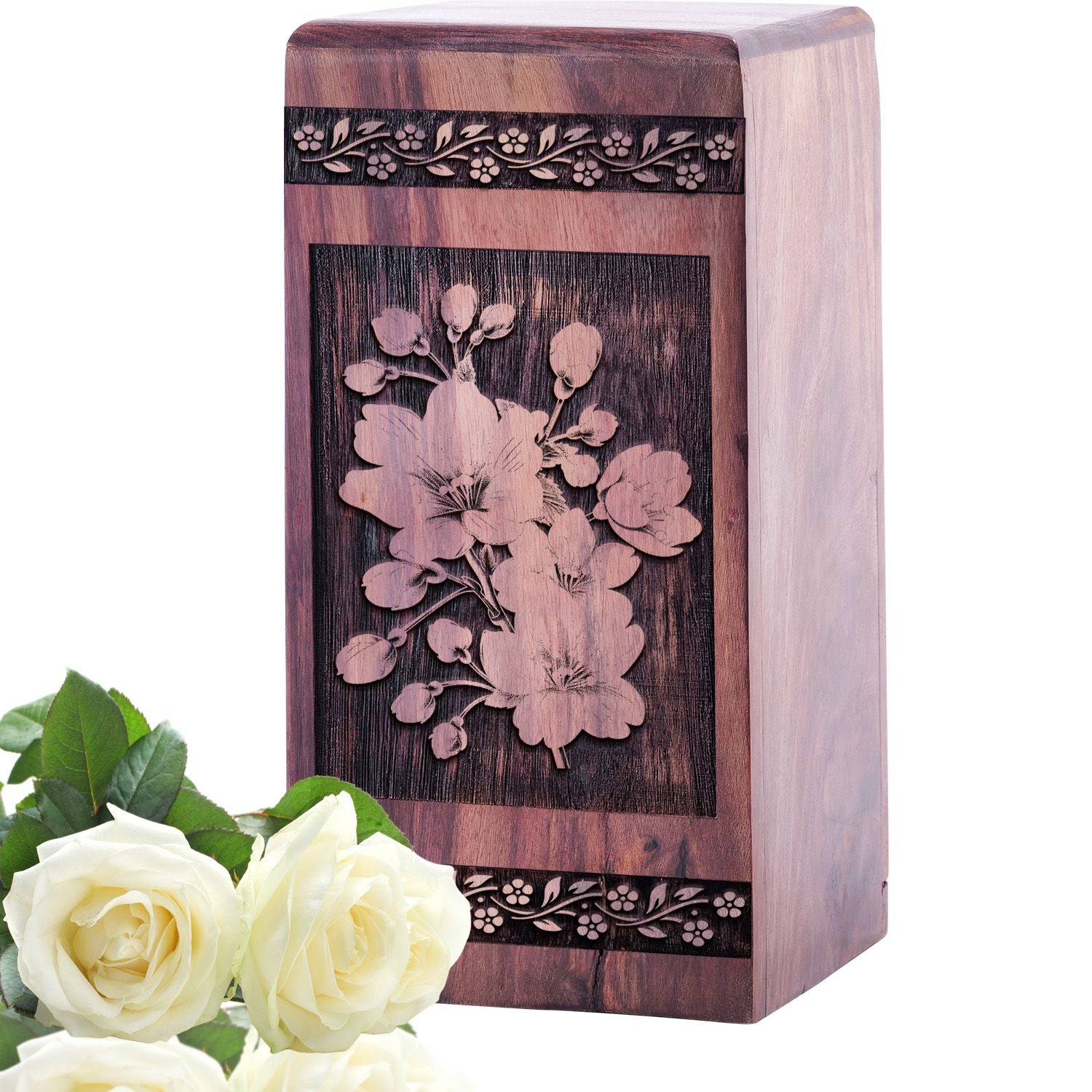 Unique Large Wooden Cherry Blossoms Cremation Urn for Human Ashes