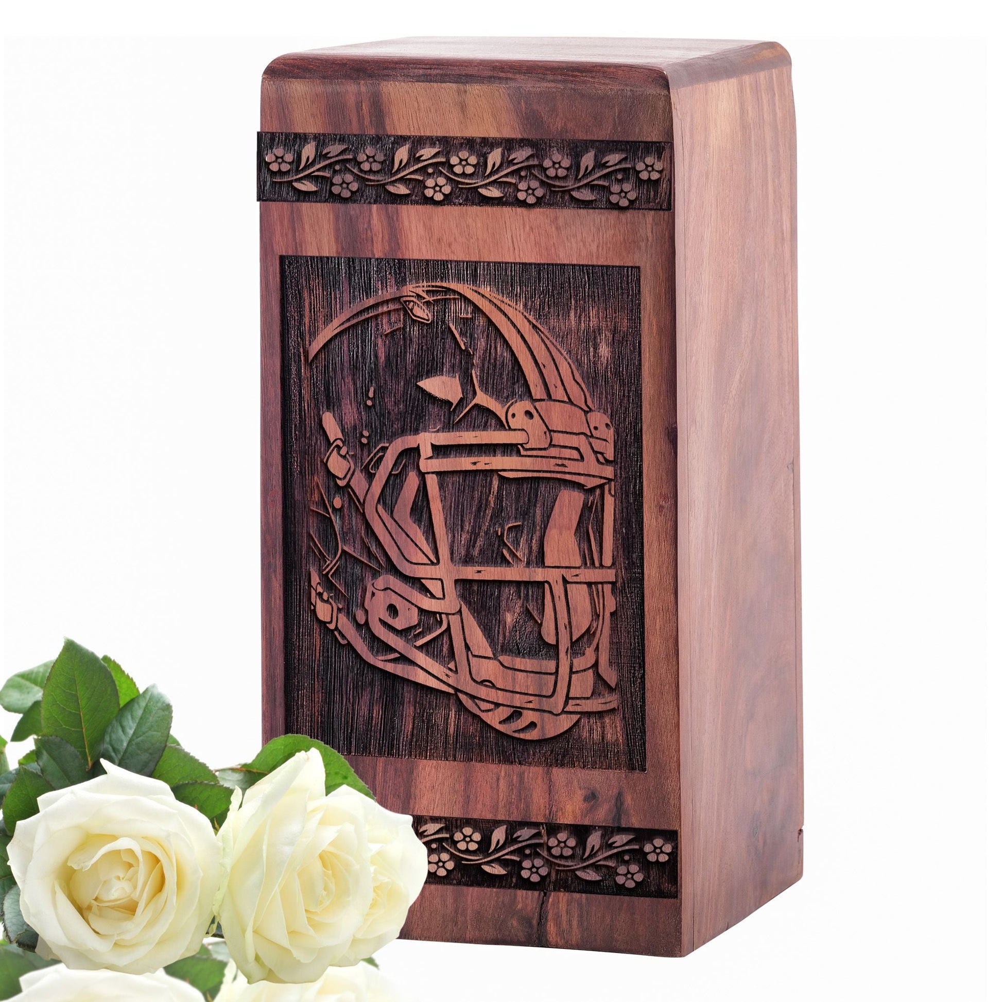 Unique Large Wooden Helmet Memorial Urn for Human Ashes