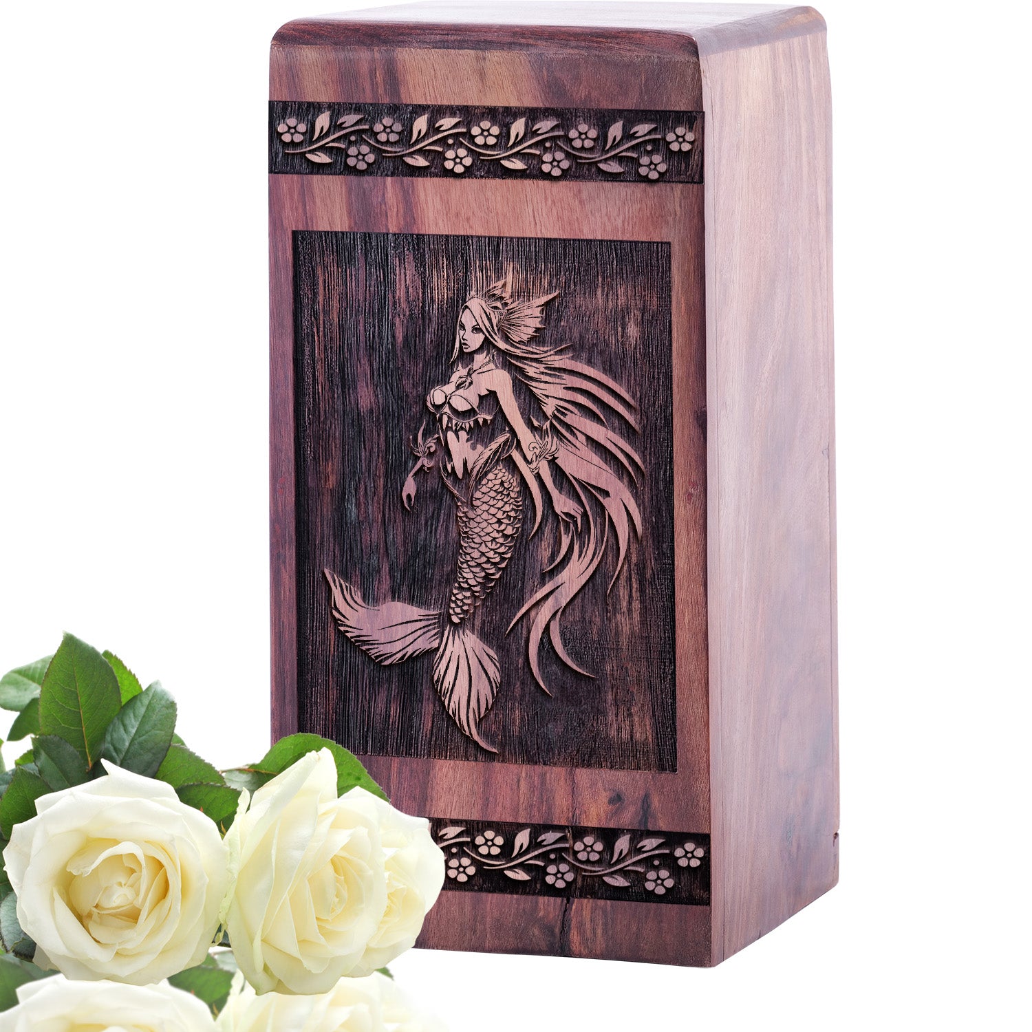 Celebrate the beauty of your loved one’s life with the Handcrafted Mermaid Keepsake Wooden Urn. Featuring an intricately Wood Boxed mermaid motif, this Wood Box Cremation Urn symbolizes strength, elegance, and the eternal connection to cherished memories.