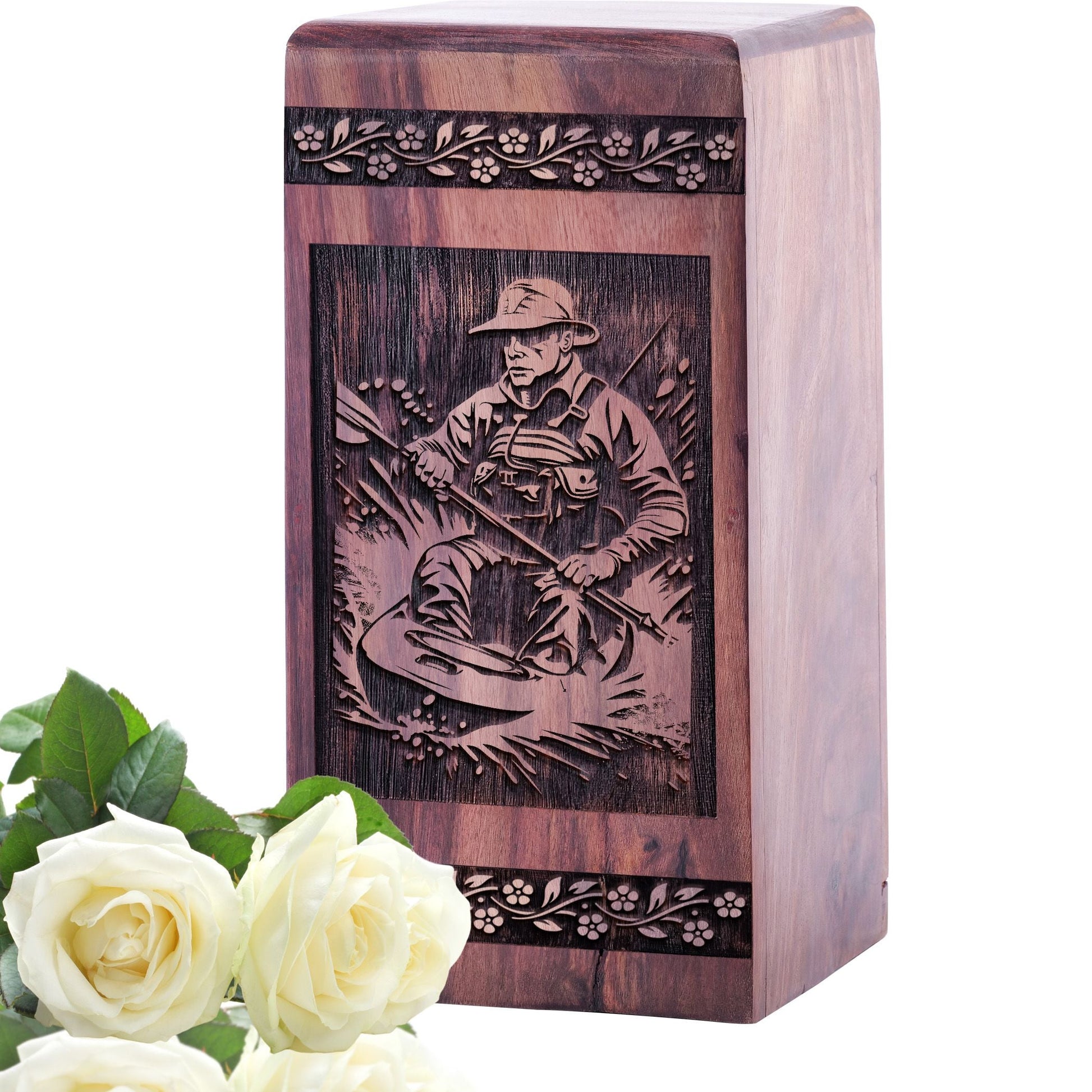 The Tranquil River Wooden Cremation Urn is a heartfelt tribute to someone who found joy and peace on the water. Featuring a serene kayaker Urn, this urn reflects their connection to nature and their adventurous soul.