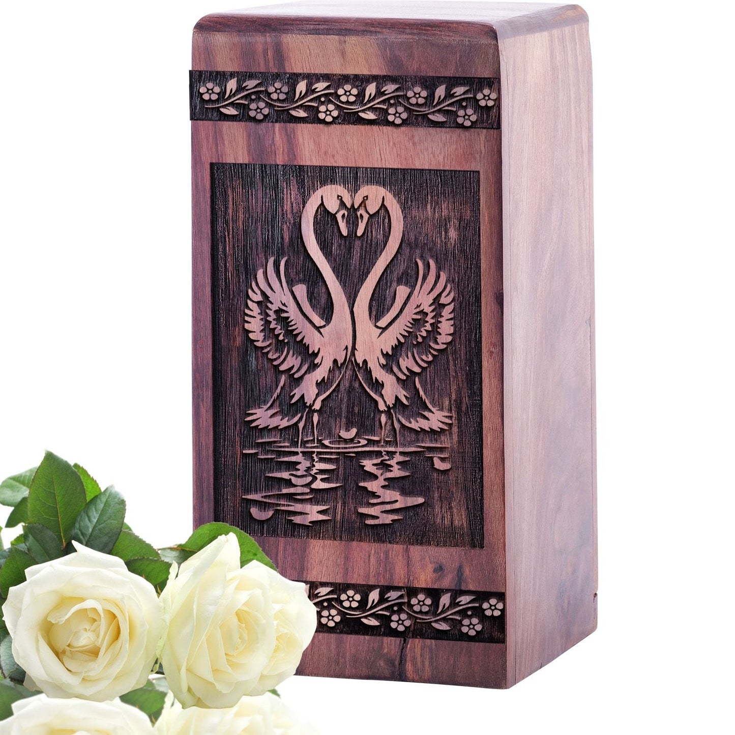 Peaceful Swan Wooden Cremation Urn - A Tribute to Tranquility