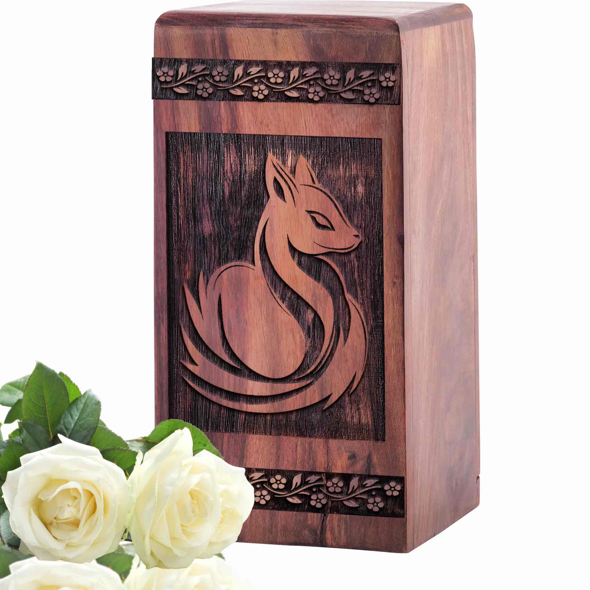Unique Wooden Fox Urn for Ashes - Memorial Keepsake