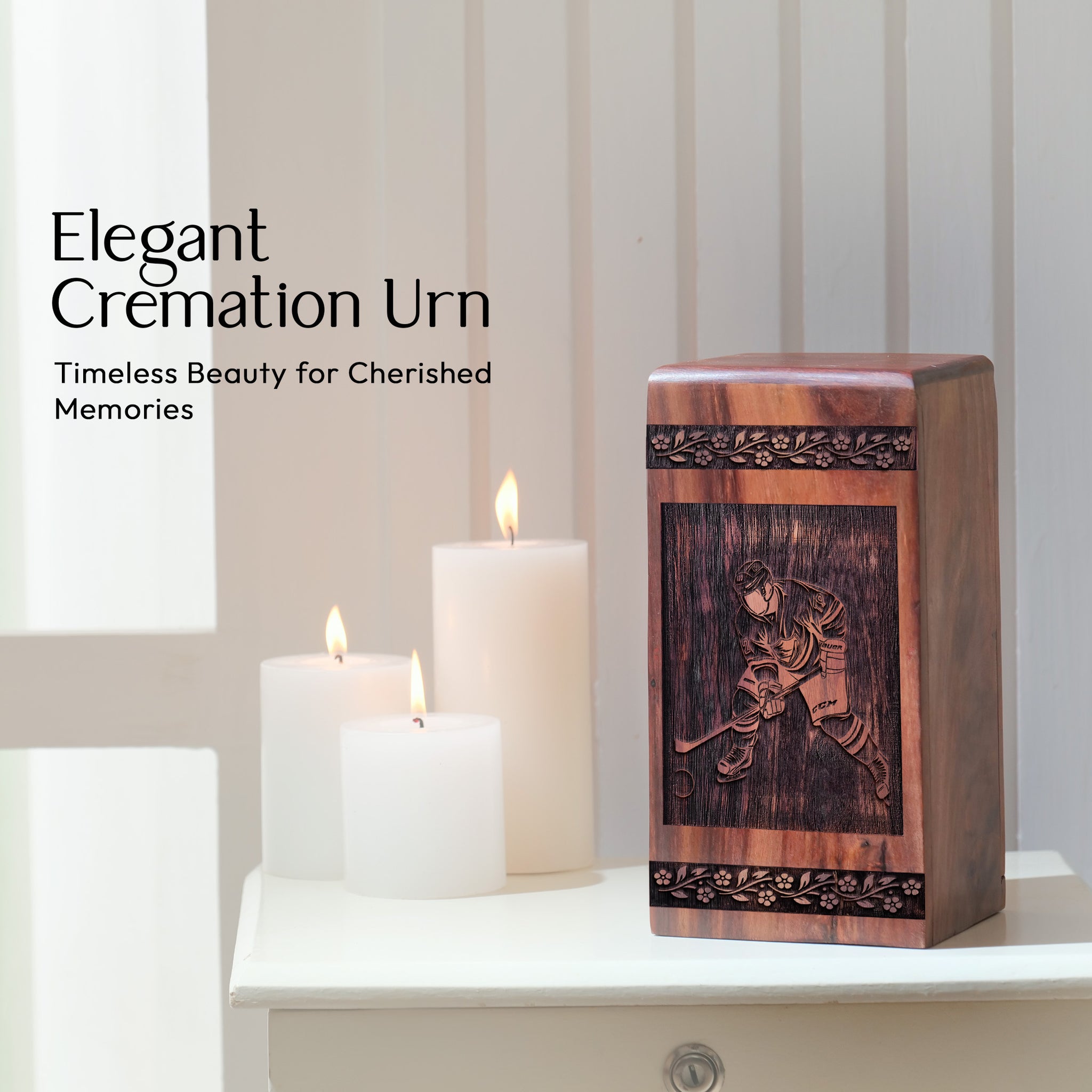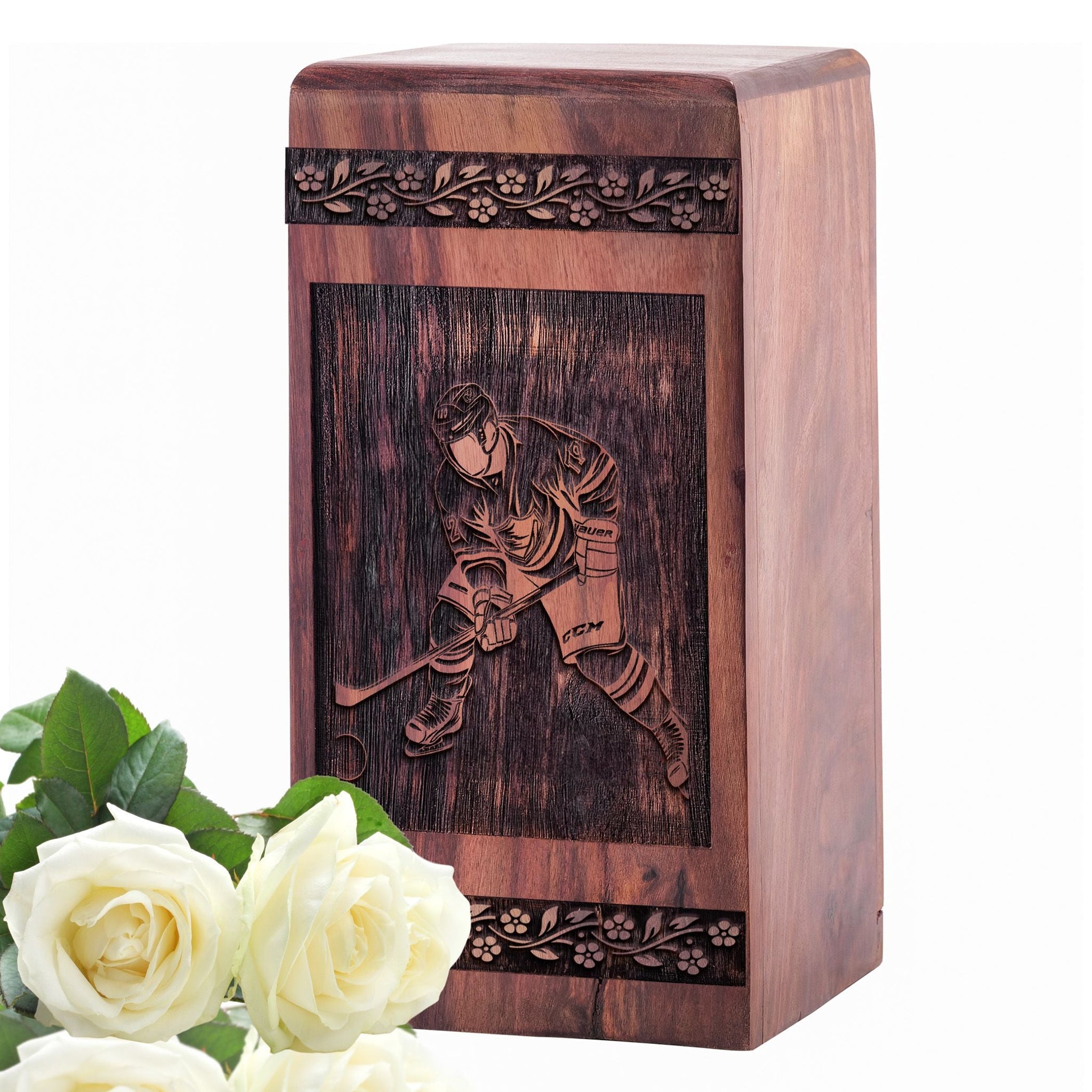 The Frozen Glory Hockey Urn celebrates the passion and joy of a life centered on hockey. Featuring a beautifully engraved hockey net and stick against a frosty backdrop, this urn symbolizes victory, teamwork, and the enduring memory of someone who loved the game.