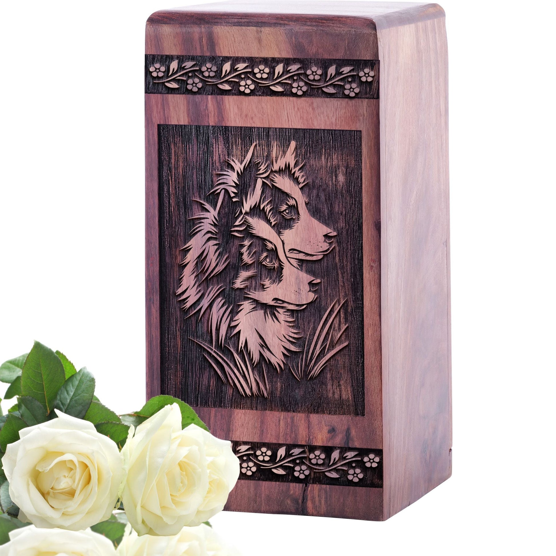 Celebrate the unwavering devotion of your furry friend with this lovingly crafted Wooden Cremation Urn.