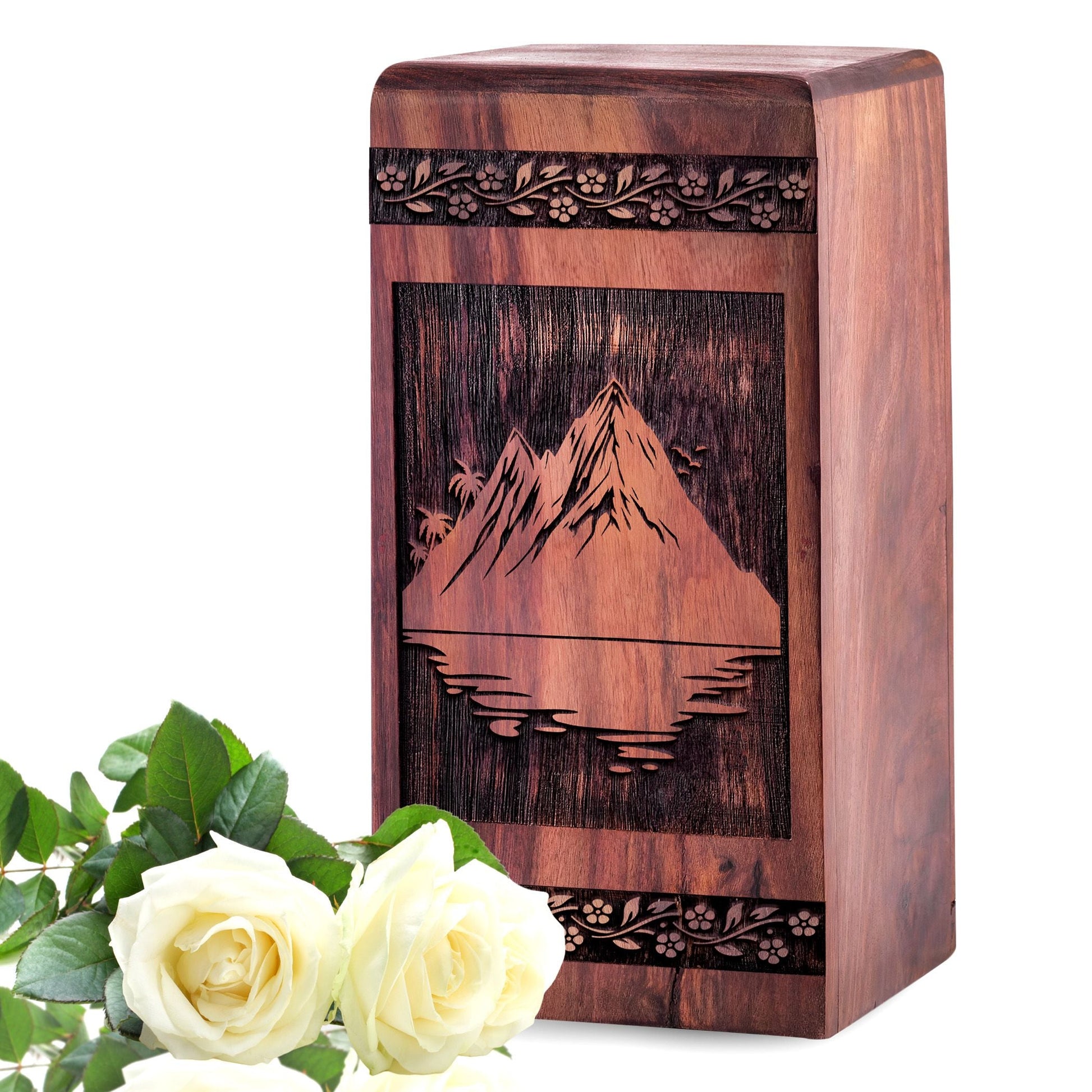 Unique Wooden Mountain Urn for Ashes - Handmade Memorial