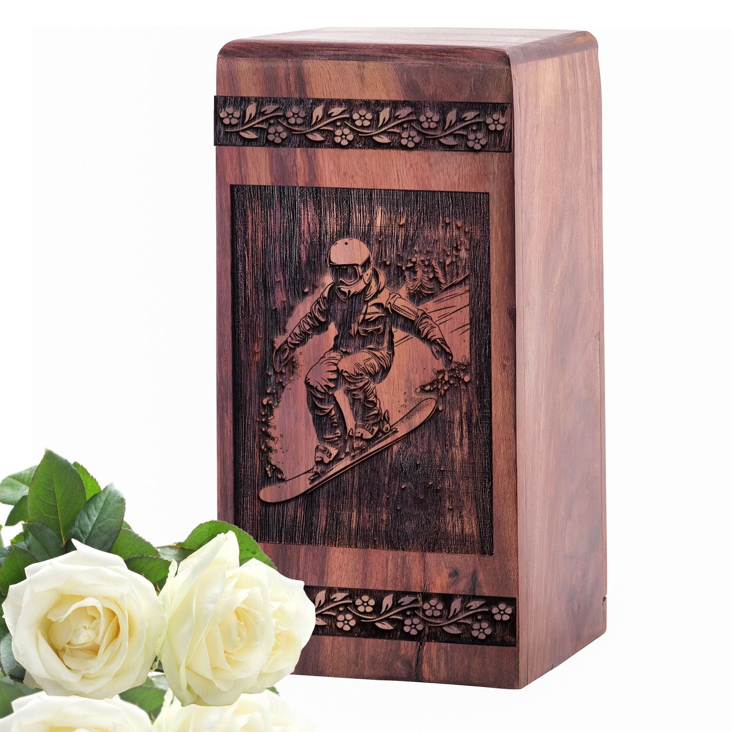 Unique Wooden Skiing Snowboard Urn Box for Ashes - Memorial