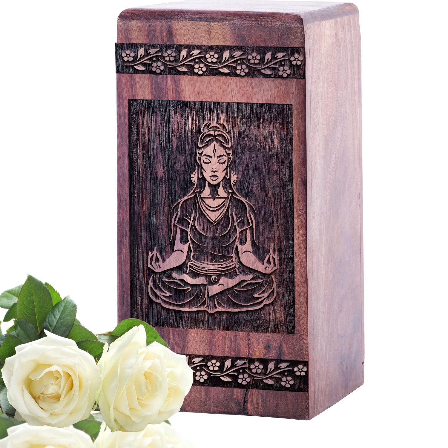Unique Wooden Yoga Cremation Urn for Human Ashes