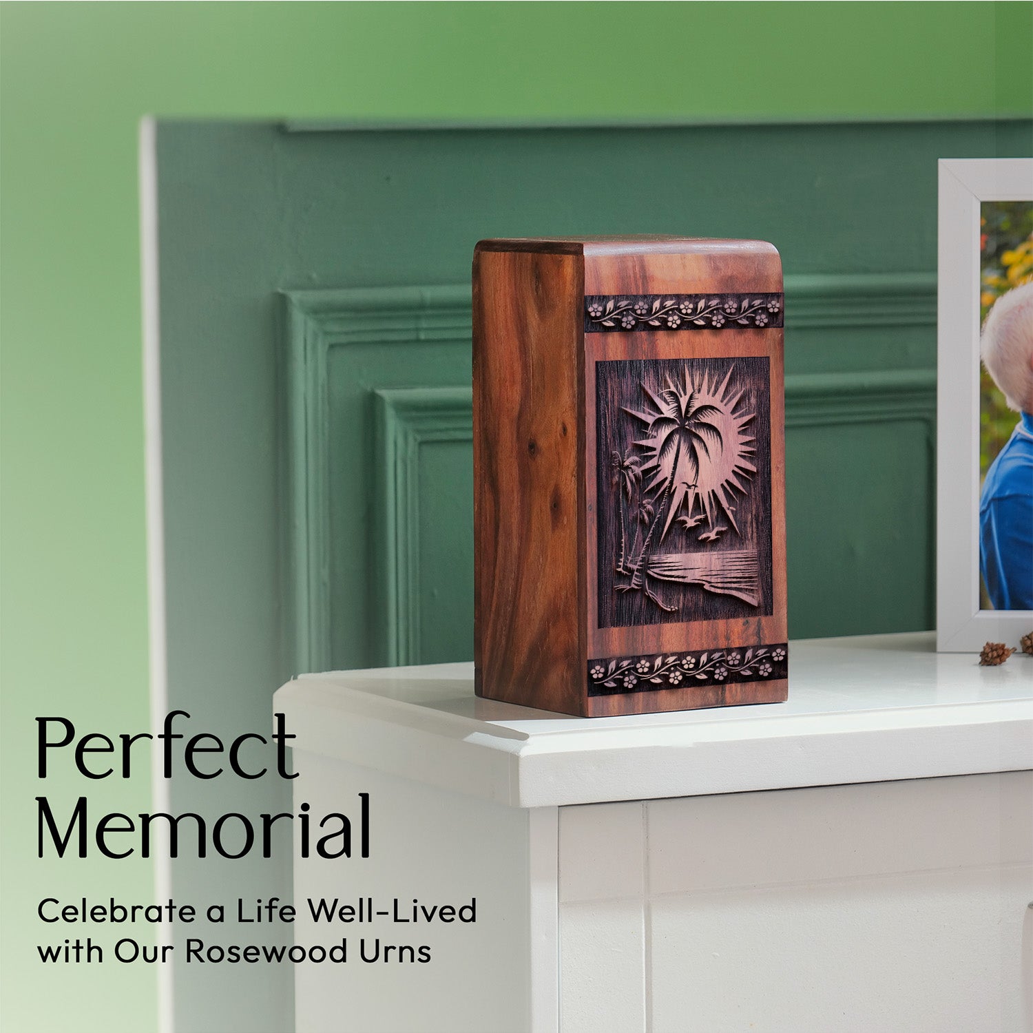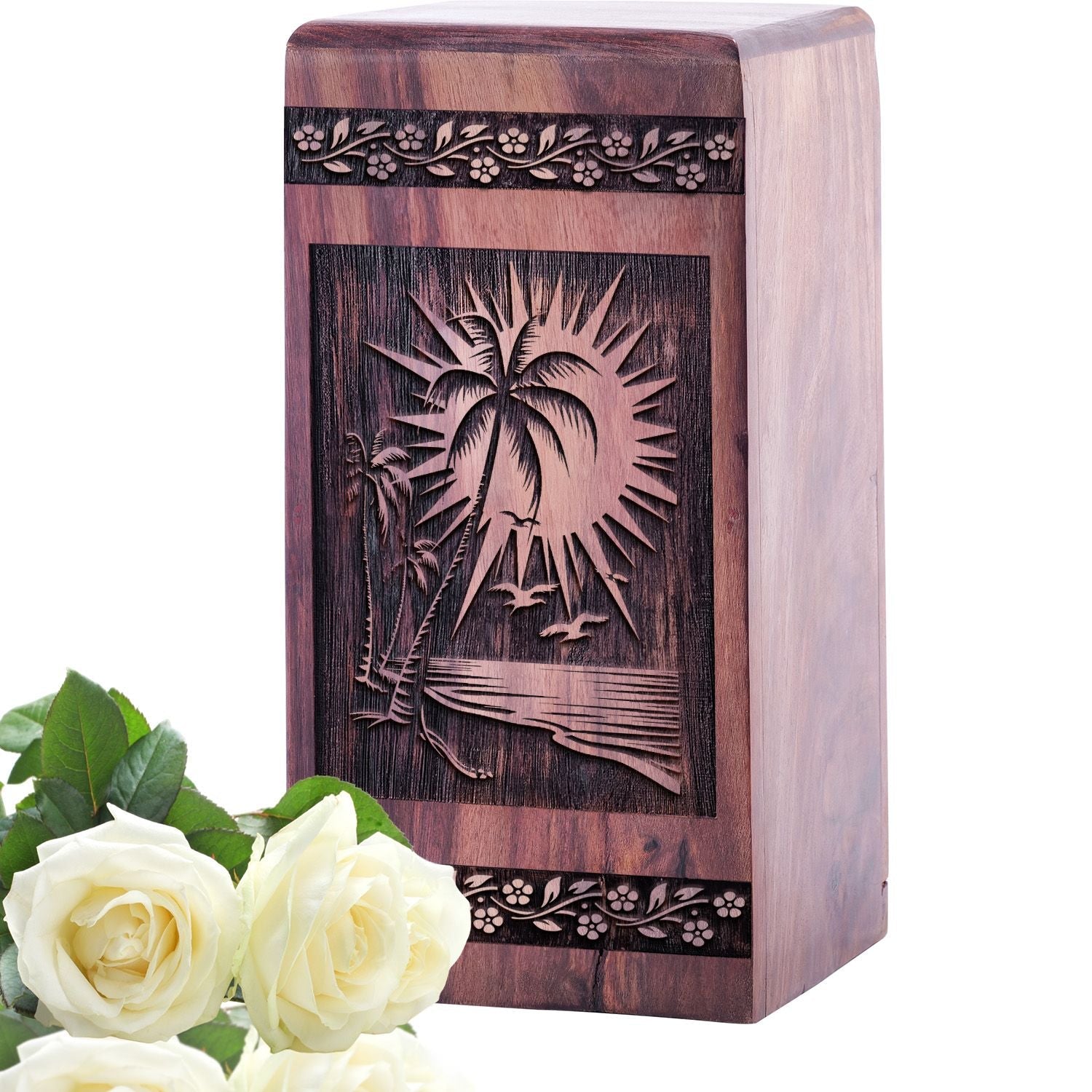 Honor a peaceful life with the Handcrafted Sunset Beach Wooden Urn for Ashes. Featuring a tranquil sunset beach motif, this beautiful Wood Cremation Urn symbolizes eternal rest, reflection, and the beauty of cherished memories.
