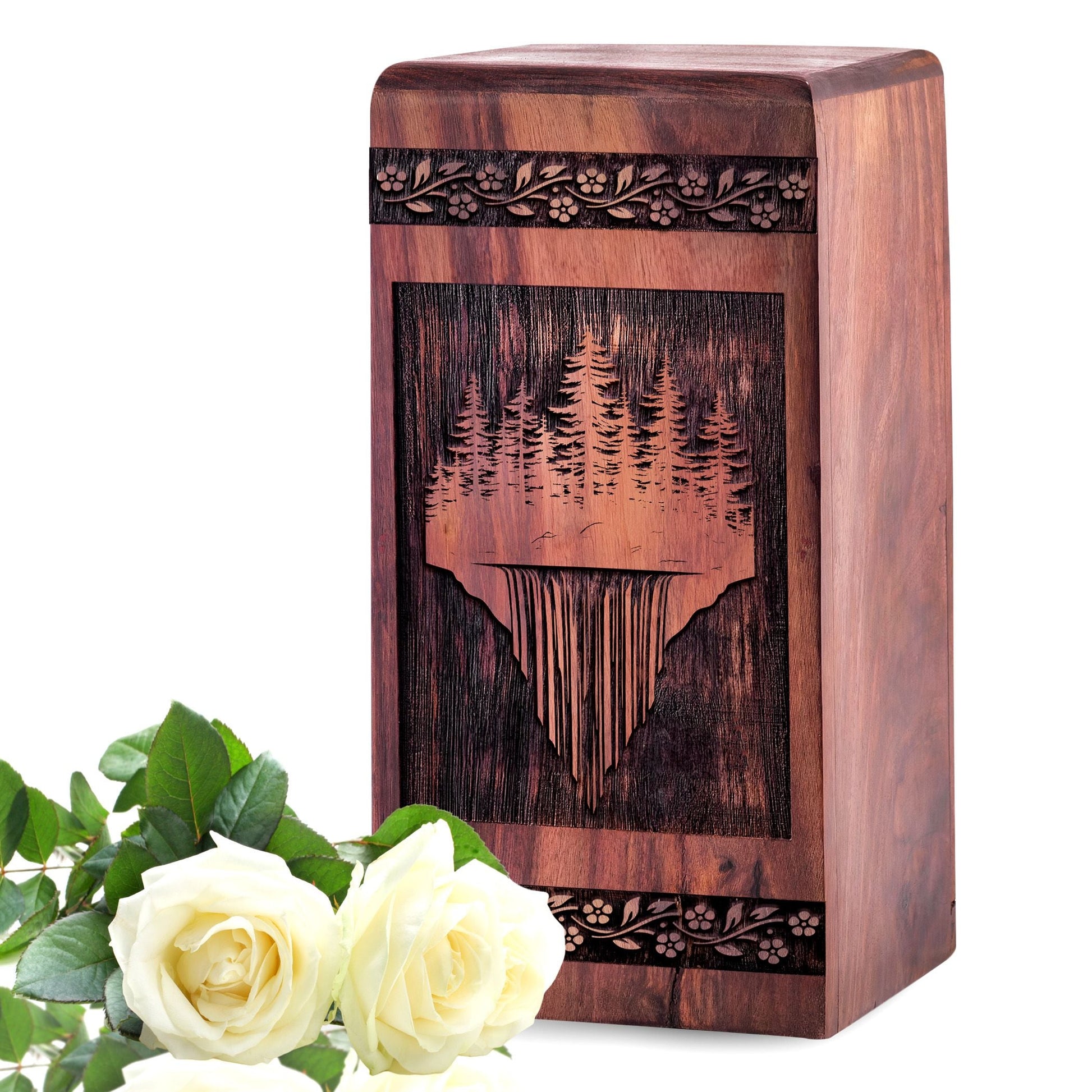 Wooden Forest Urn for Ashes - Handcrafted Memorial Box