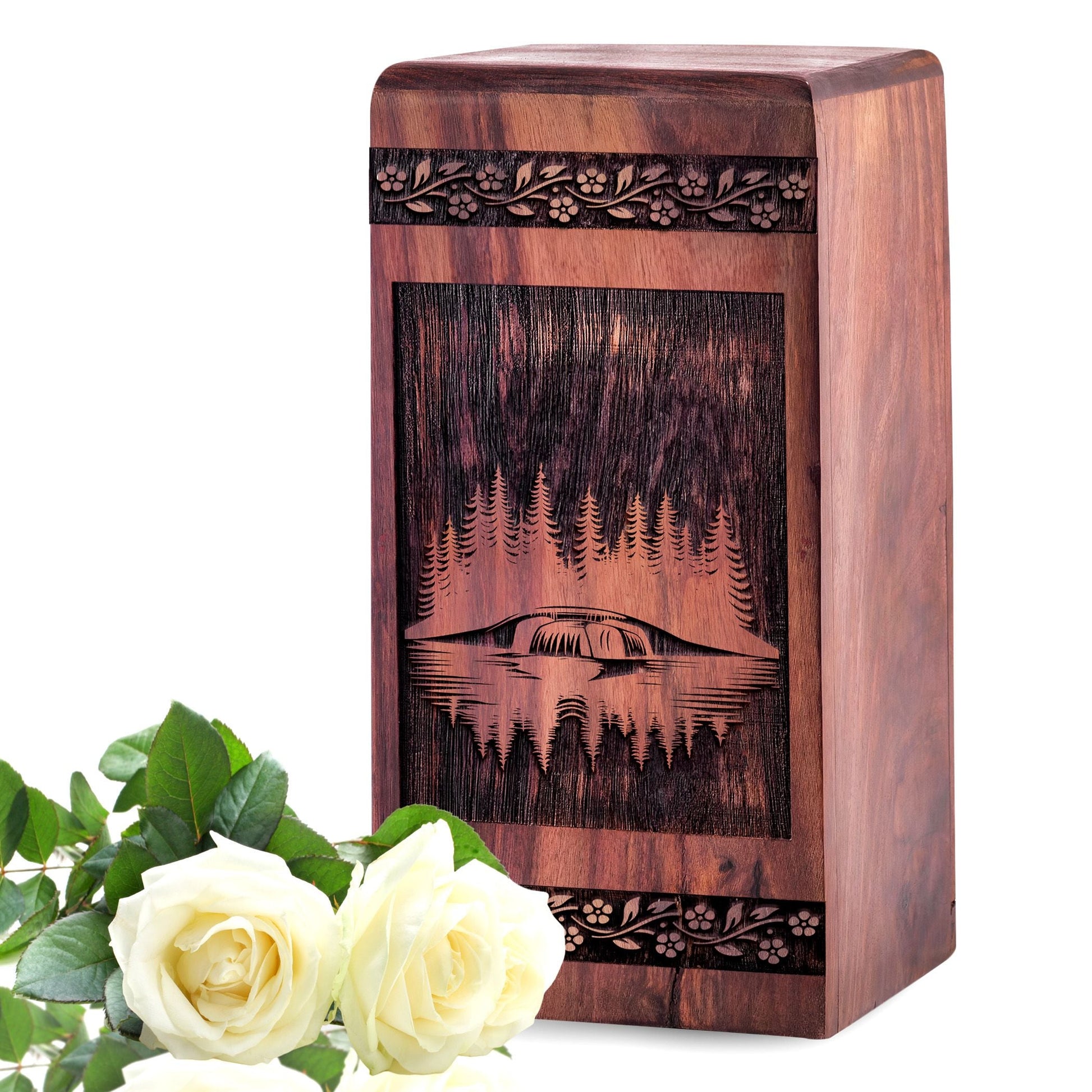 Wooden Forest Urn for Ashes - Handcrafted Memorial Keepsake