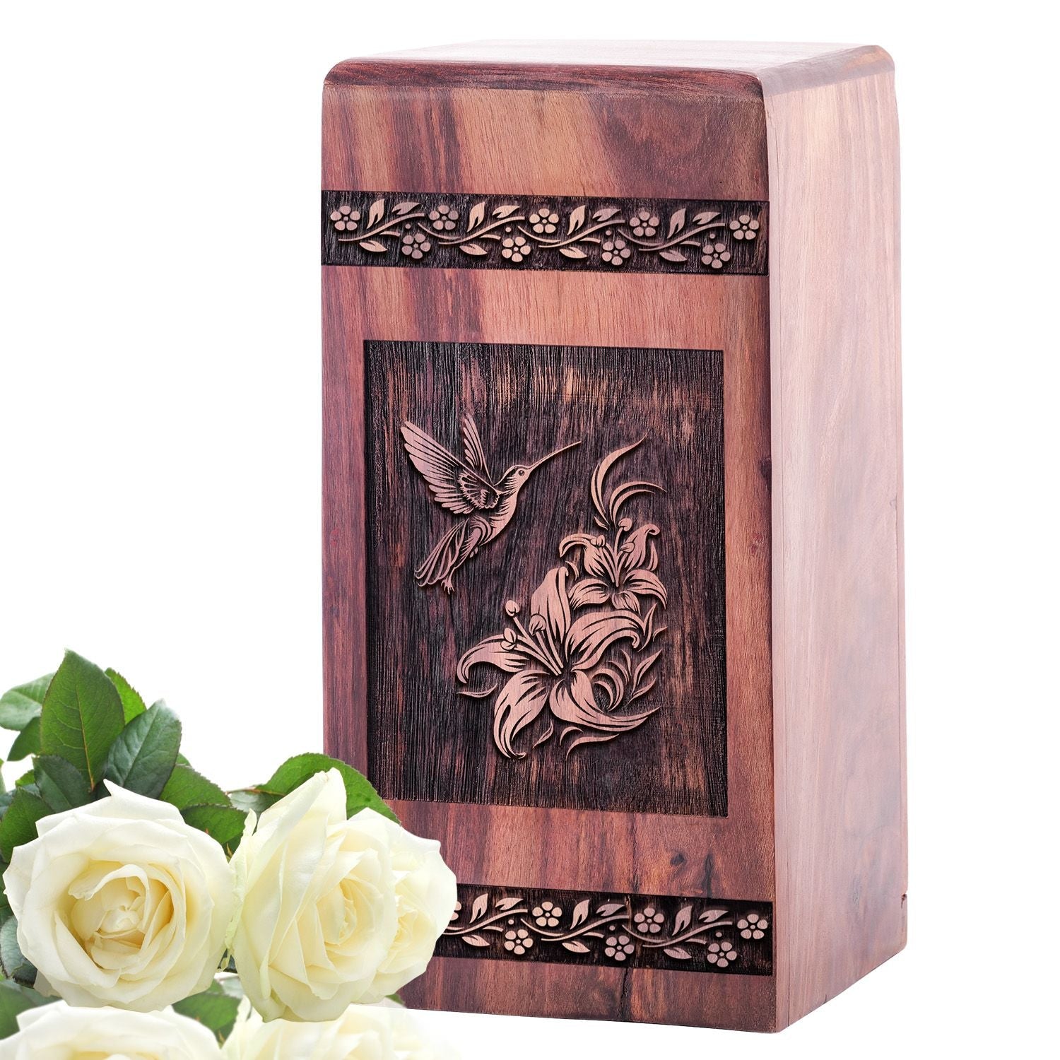 - Handcrafted Quality: Made with care from high-quality wood, each urn is engraved with a meaningful hummingbird Wood Box.