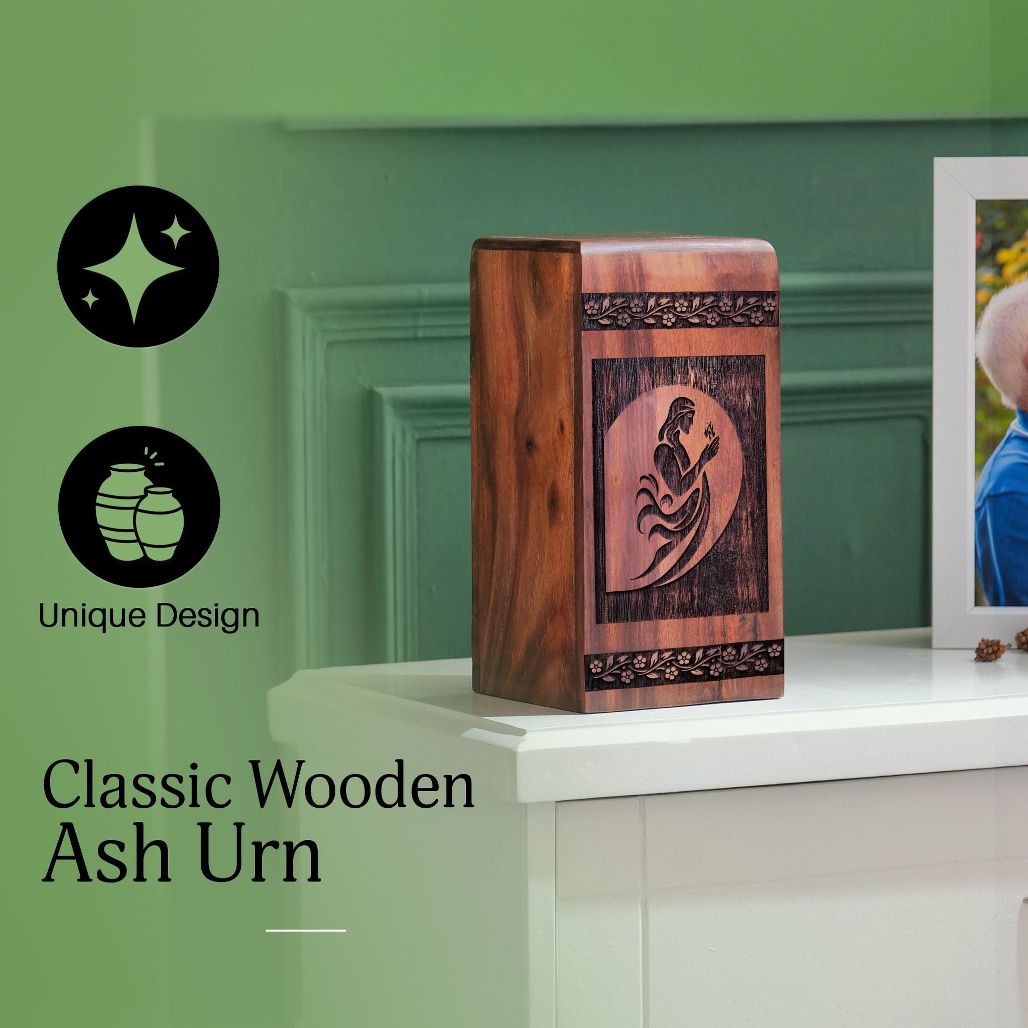 The Resurrection Jesus Urn symbolizes hope, renewal, and eternal life. Featuring an image of Christ rising in glory, this urn is a reminder of the promise of salvation and the eternal memory of a soul who embraced faith and hope throughout their life.