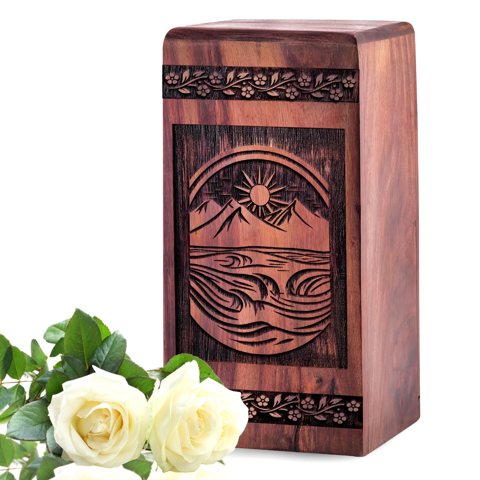 Wooden Mountain Urn Box for Ashes - Handcrafted Tribute